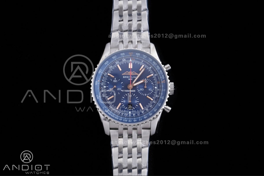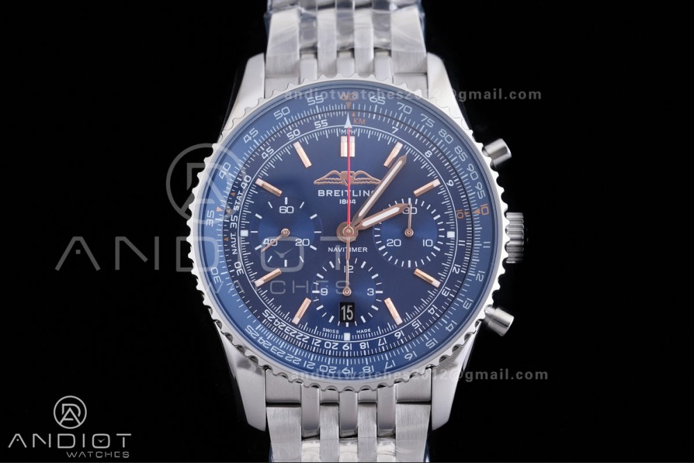 Navitimer B01 SS 43mm BLS 1:1 Best Edition Blue Dial RG Marker on SS Bracelet A7750