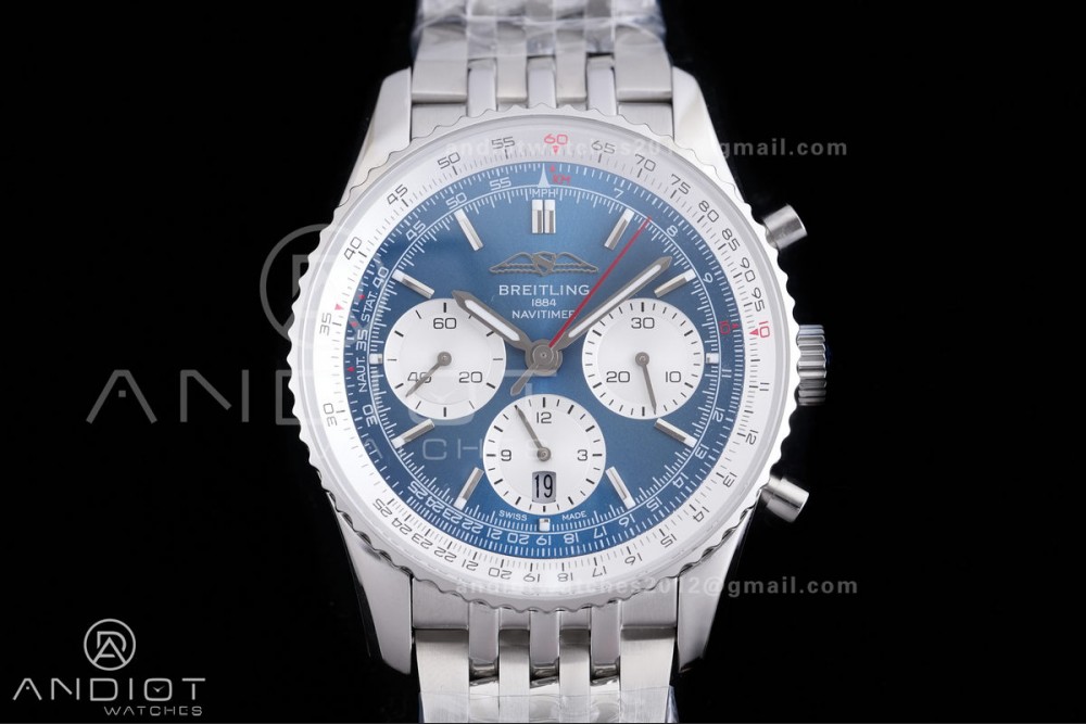 Navitimer B01 SS 43mm BLS 1:1 Best Edition Blue Dial White subdial on SS Bracelet A7750
