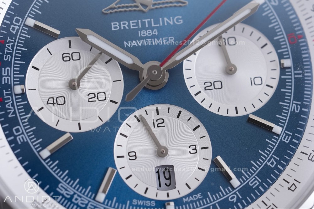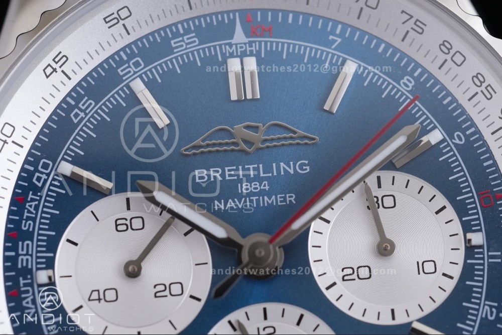 Reviews Over Navitimer B01 SS 43mm BLS 1:1 Best Edition Blue Dial White subdial on SS Bracelet A7750