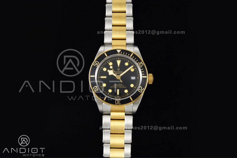 Black bay 41 SS/YG BLF 1:1 Best Edition Black Bezel Black Dial on Rivet Strap A2824