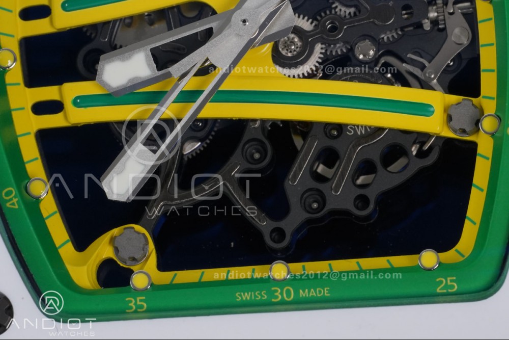 - Movement : Asian super clone RMUL2 skeleton movement with black ribs, the best Asian RM movement at the moment, same construction as genuine