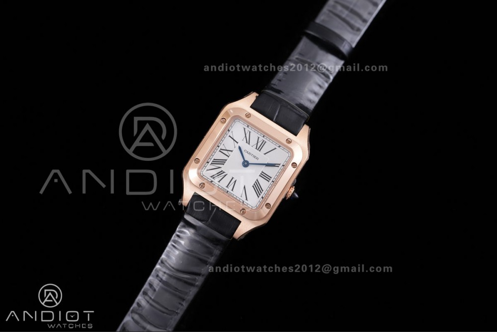 Santos Dumont 27.5mm RG AF 1:1 Best Edition Silver Dial on Black Strap A157