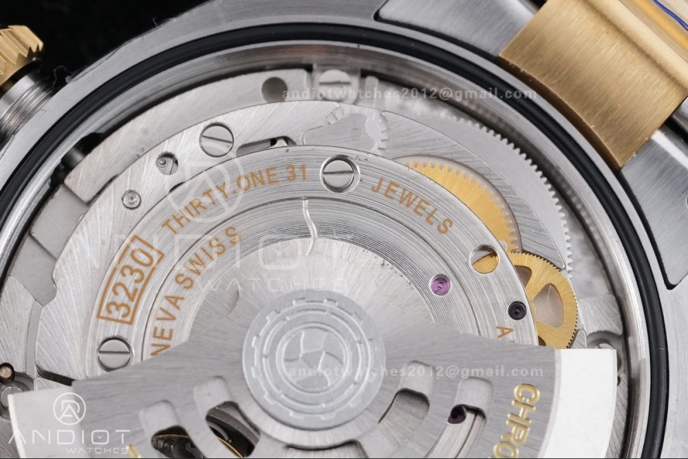 - Movement : Base Movement: Asian 23J automatic movement; Decoration: Platinum plated movement plate and rotor which are made according to the genuine movement, decorated to Rolex Cal.3230 movement.