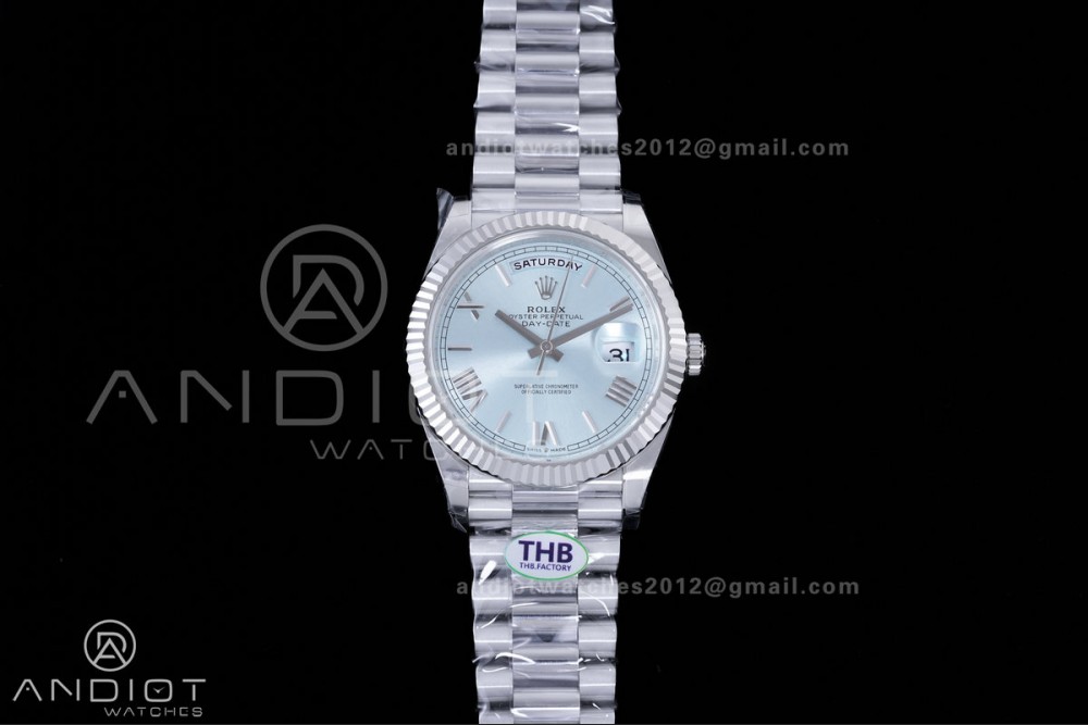 Day Date 40 SS 228236 THBF 1:1 Best Edition Ice Blue Roman Dial on President Bracelet VR3255 V3 (Gain Weight)