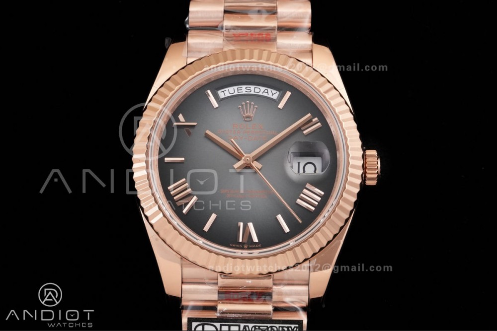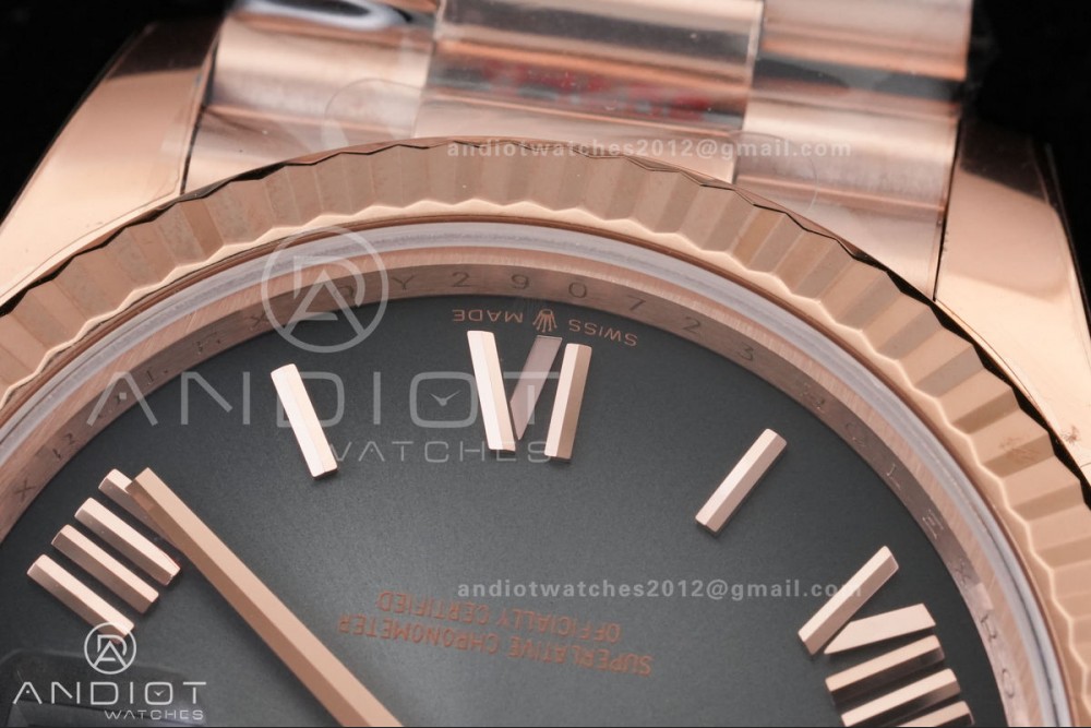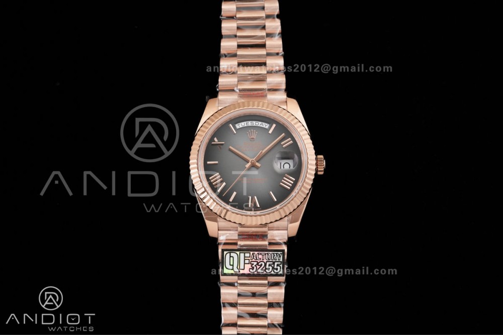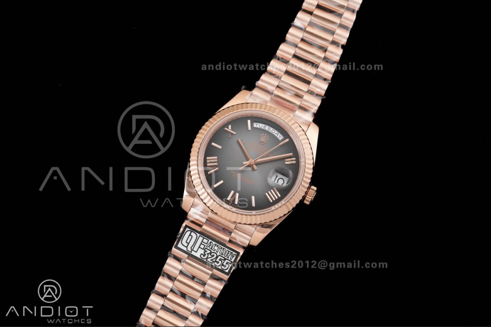 DayDate 40 RG QF 1:1 Best Edition Gray Ombre Roman Dial on President Bracelet VR3255 V8 (Gain Weight)