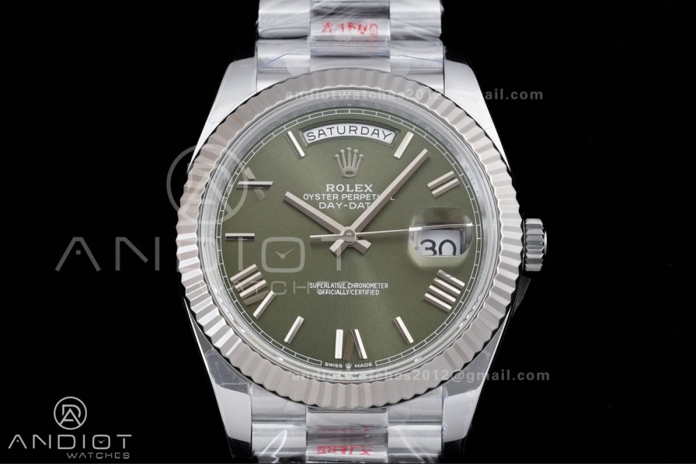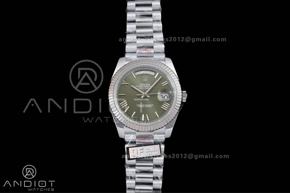 DayDate 40 SS QF 1:1 Best Edition Green Roman Dial on President Bracelet VR3255 V8 (Gain Weight)