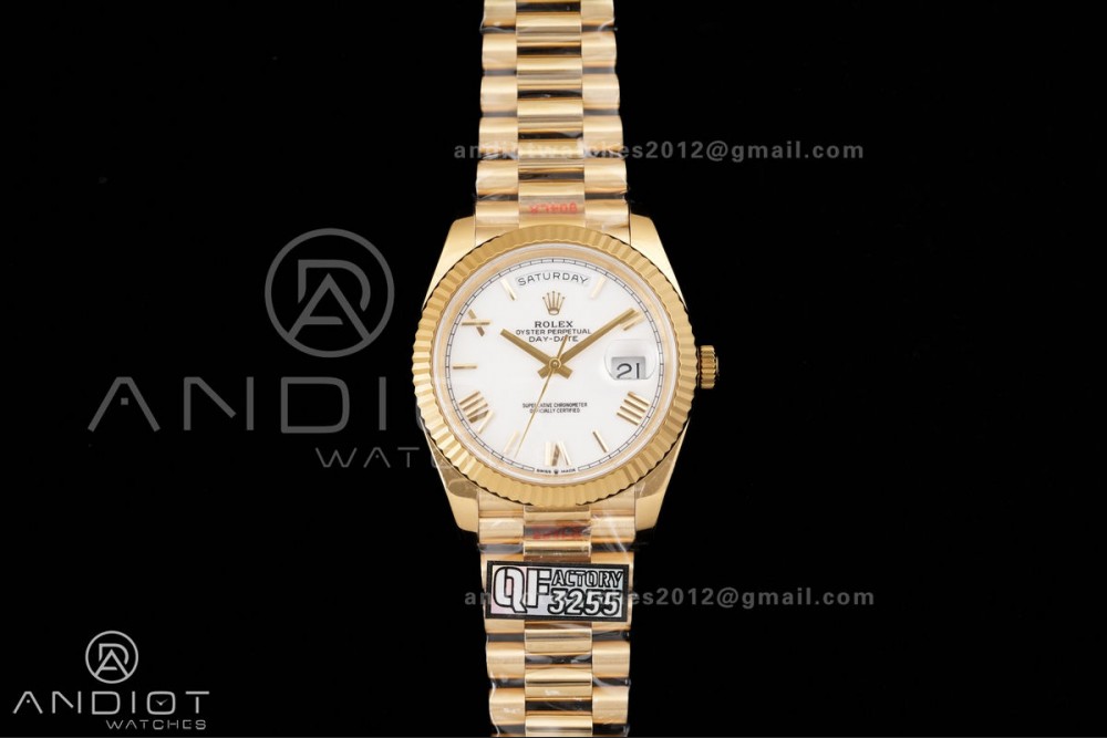 DayDate 40 YG QF 1:1 Best Edition White Roman Dial on President Bracelet VR3255 V8 (Gain Weight)