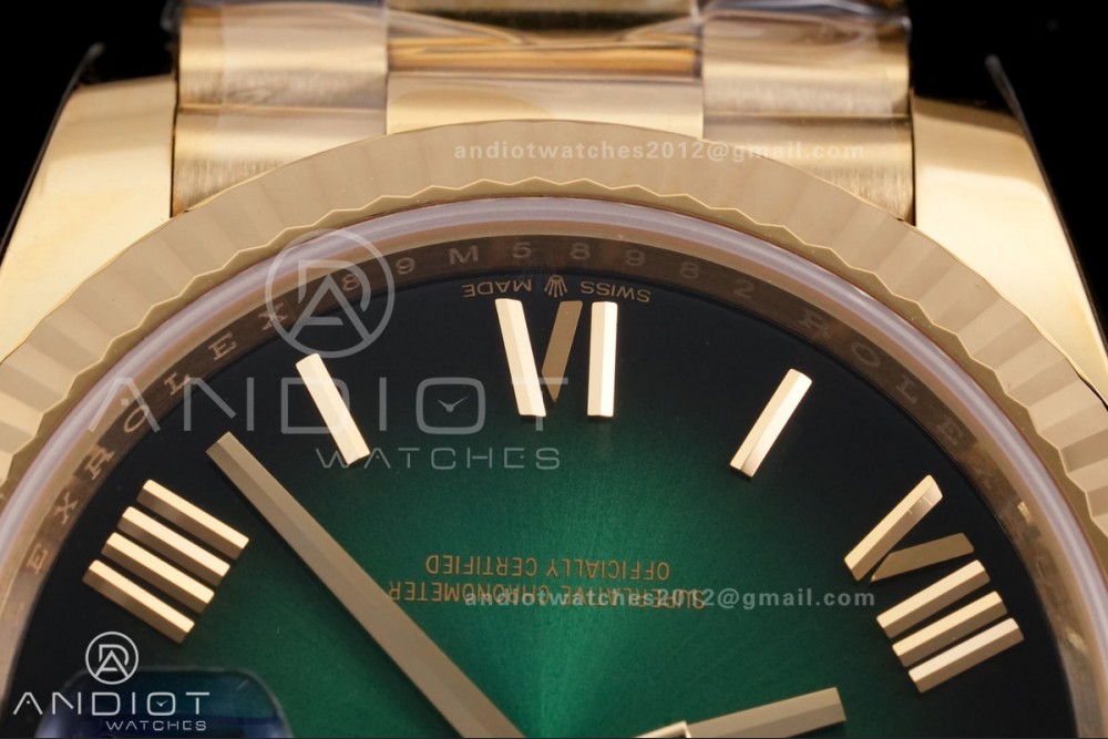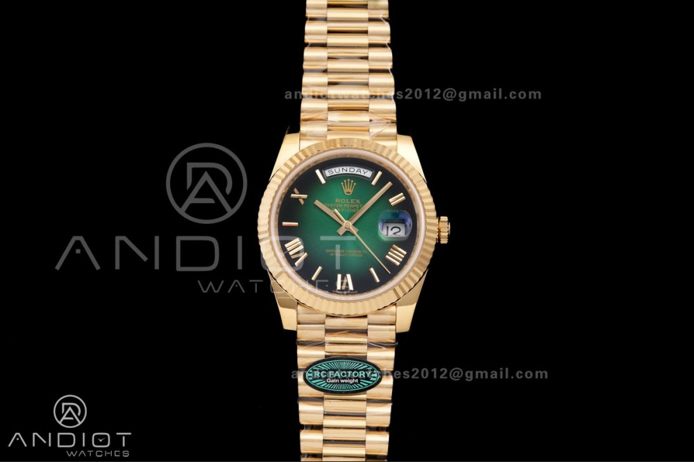 Day Date 40 YG 228238 RCF 1:1 Best Edition Green Ombre Dial on President Bracelet VR3255 (211g)