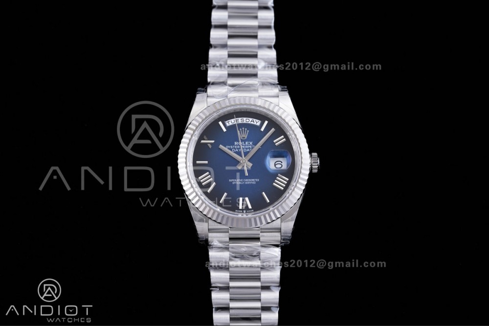 Reviews Over Day Date 228239 40mm Gain Weight V2 VSF 1:1 Best Edition Blue Ombre Dial Roman Marker On President Bracelet DD3255