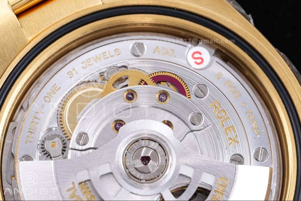 • Case : 18K Yellow Gold Plated Solid 904L Stainless Steel(Cu-W Metal Increase Watch Weight )