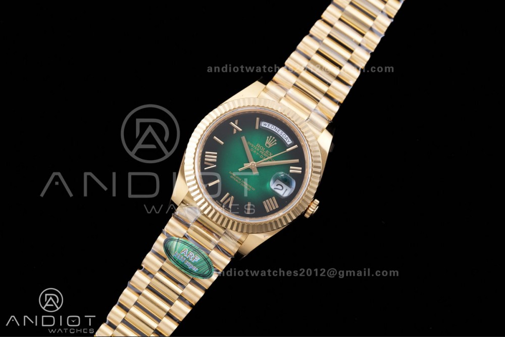 Reviews Over DayDate 40 228238 ARF V4 1:1 Best Edition Green Ombre Roman Dial on President Bracelet VR3255(Gain Weight 210g)