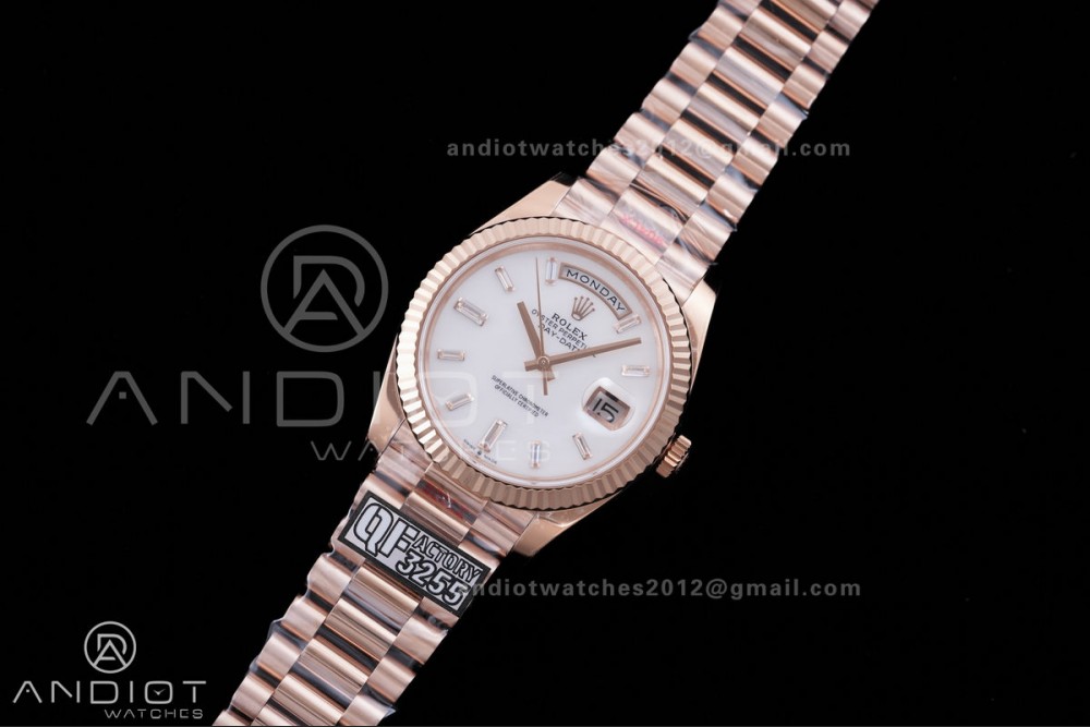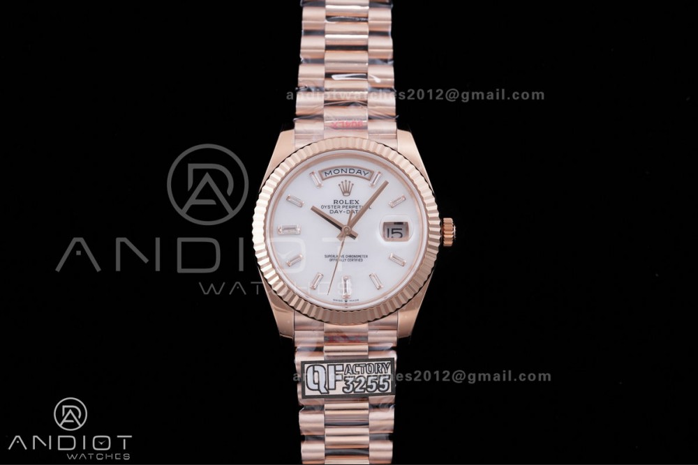 DayDate 40 RG 1:1 Best Edition White MOP Crystal Dial on President Bracelet VR3255 V8 (Gain Weight)