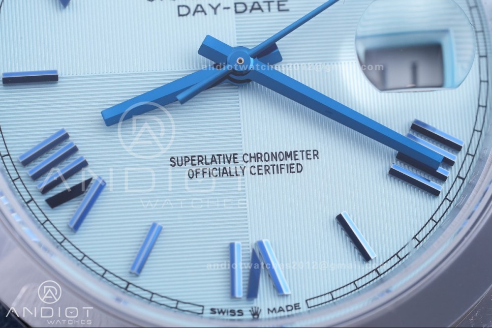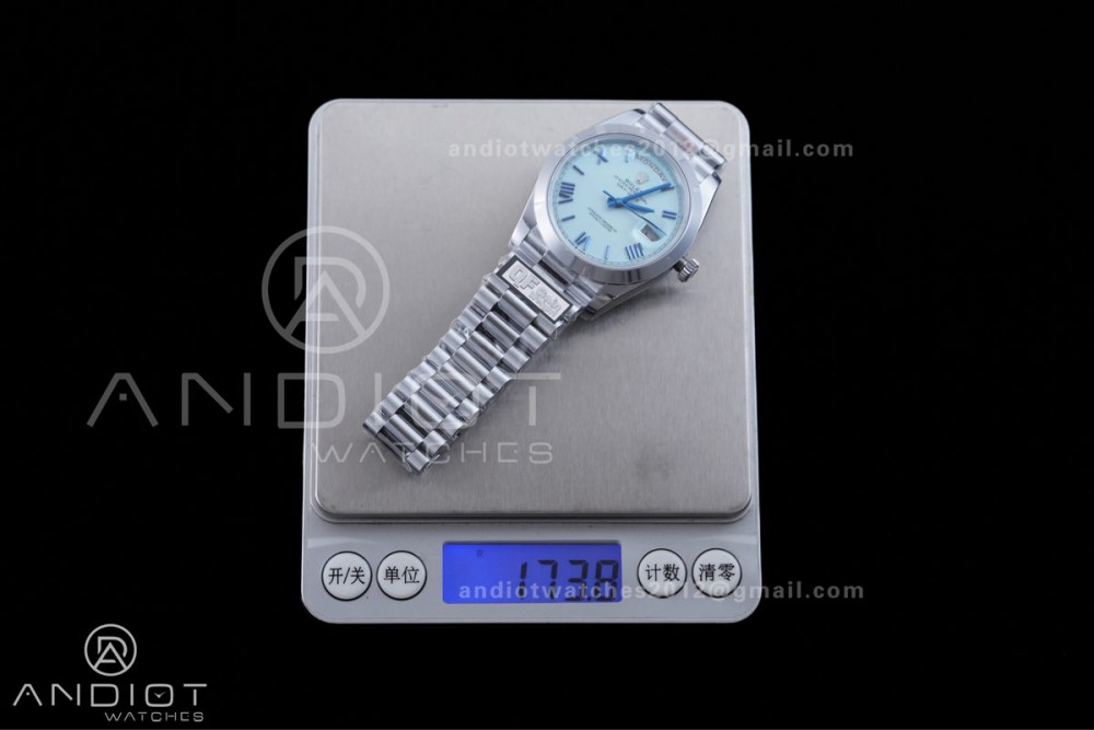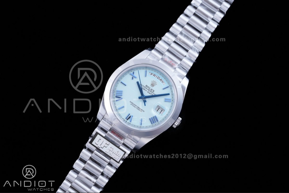 DayDate 40 SS QF 1:1 Best Edition 904L Steel Blue Roman Marker Dial on President Bracelet VR3255 V8 (Gain Weight)