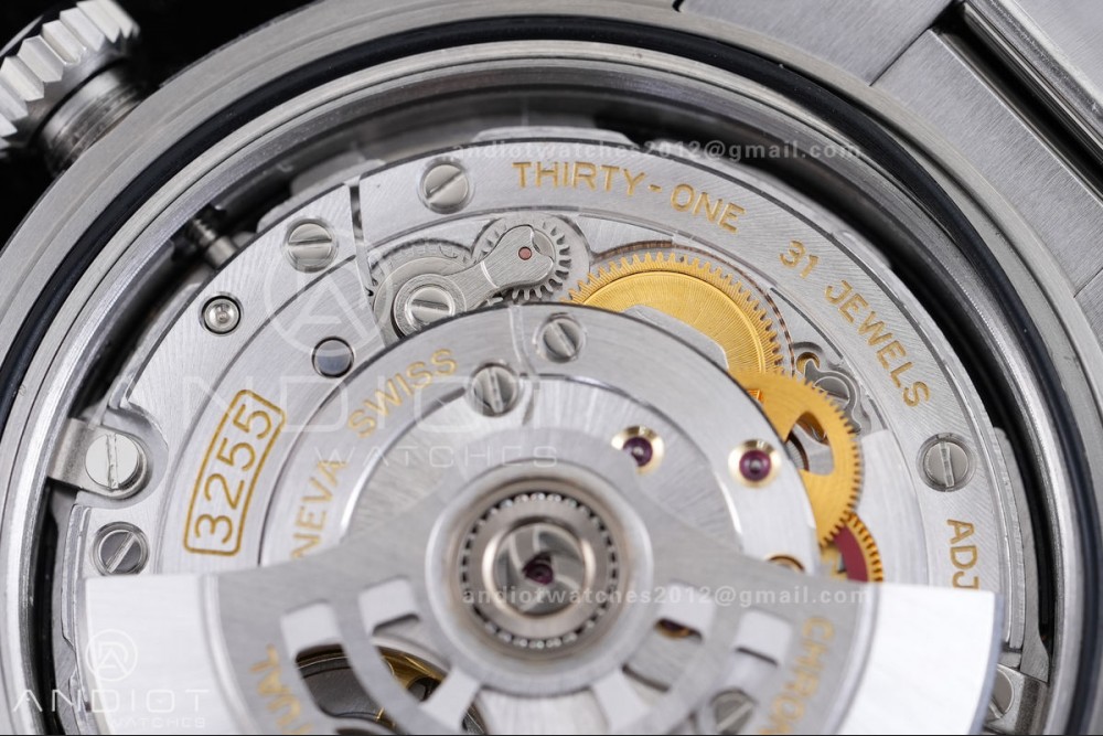 • Movement : Asian Super Clone Dandong 3255 movement 28800vph, 1:1 replicated from the genuine movement, fully functional. Blue spring same as genuine. 72hours power reserve