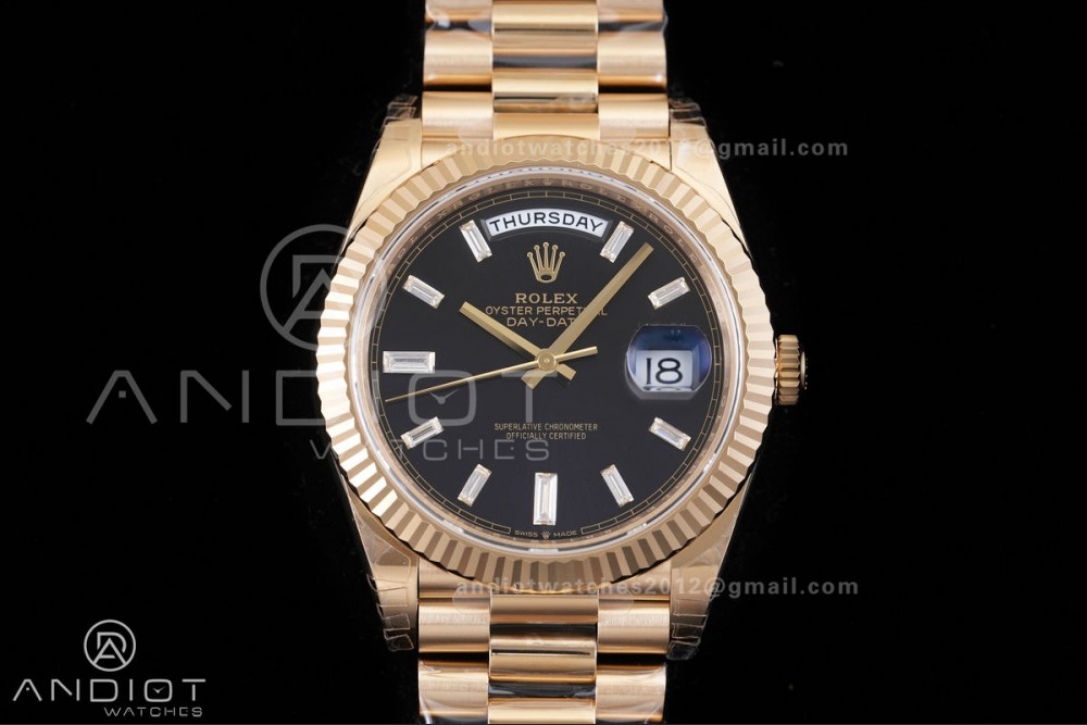 DayDate 228238 40mm VSF 1:1 Best Edition Black Dial T Diamond Marker On YG President Bracelet DD3255