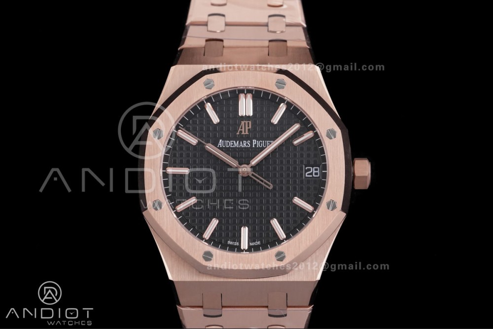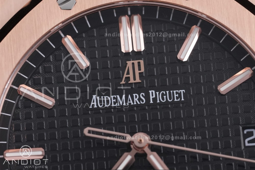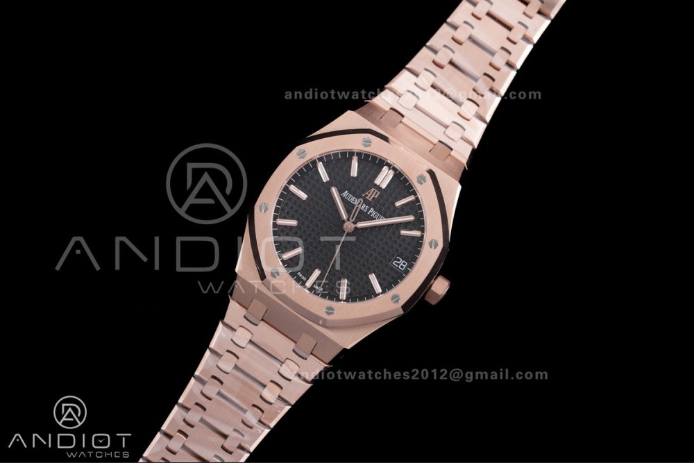 Royal Oak 15500 RG APSF 1:1 Best Edition Black Dial on RG Bracelet SA4302 Super Clone V2