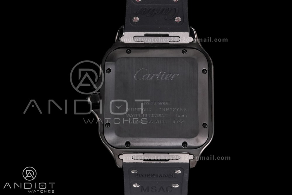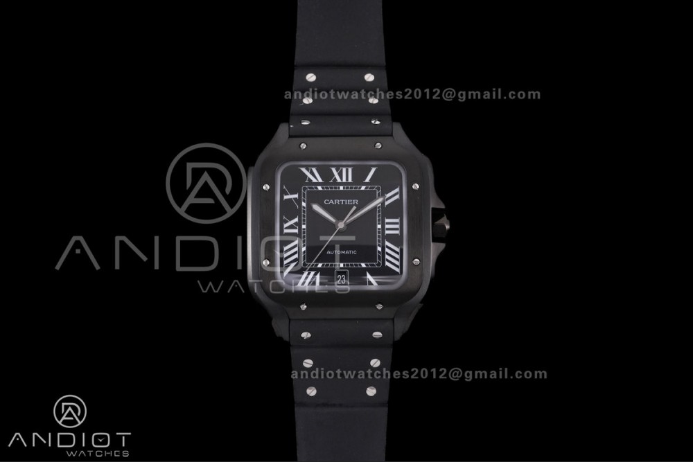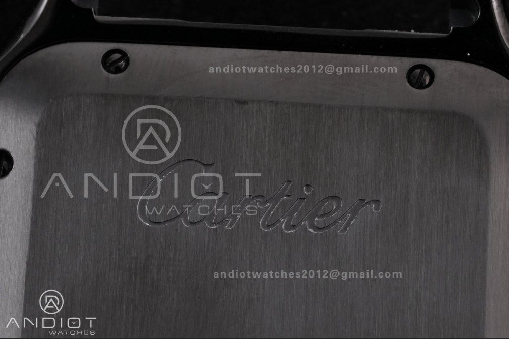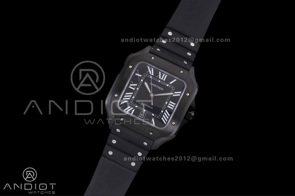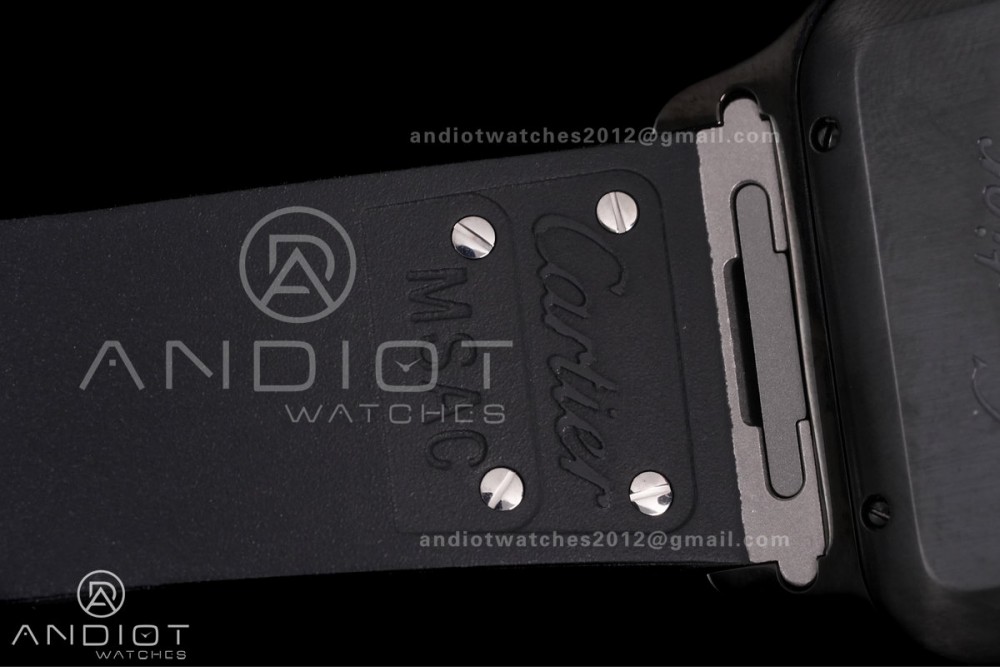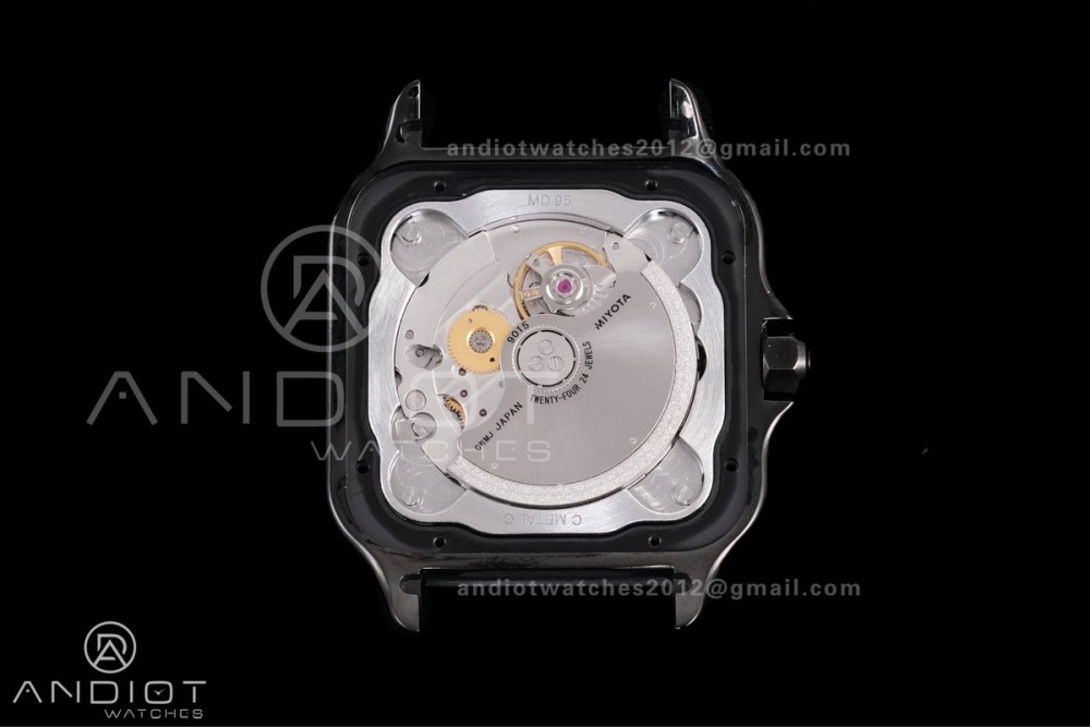 Santos de Cartier 40mm PVD BVF 1:1 Best Edition Black Dial on Black Leather Strap MIYOTA 9015