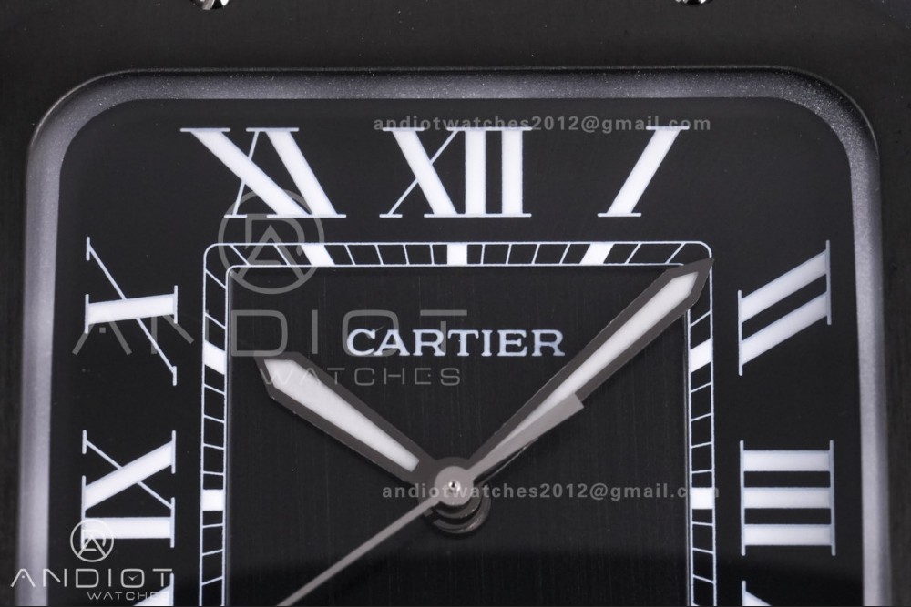 Reviews Over Santos de Cartier 40mm PVD BVF 1:1 Best Edition Black Dial on Black Leather Strap MIYOTA 9015