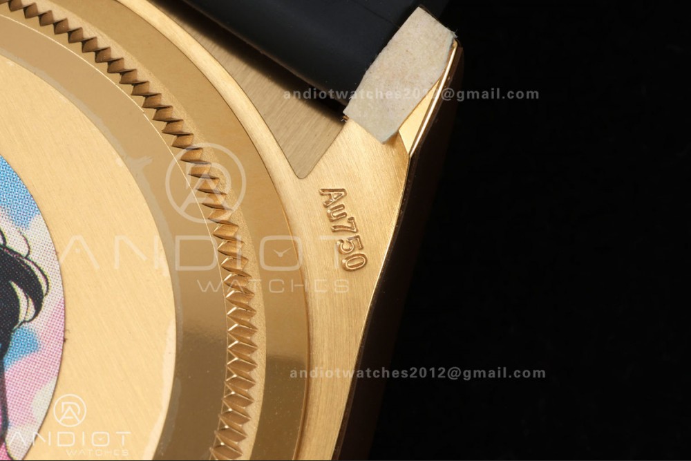 - Case : 18k yellow gold plated solid 904L stainless steel case