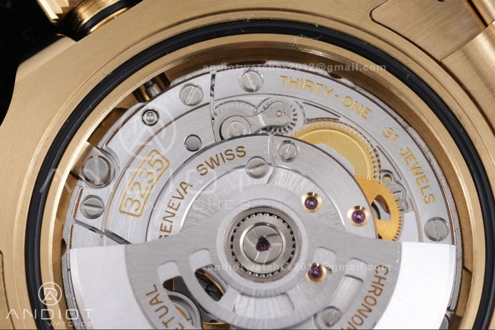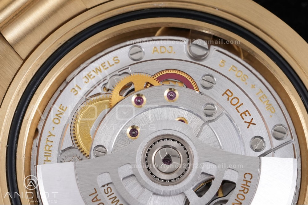 • Case : 18k yellow gold plated 1:1 replicated solid 904L stainless steel case