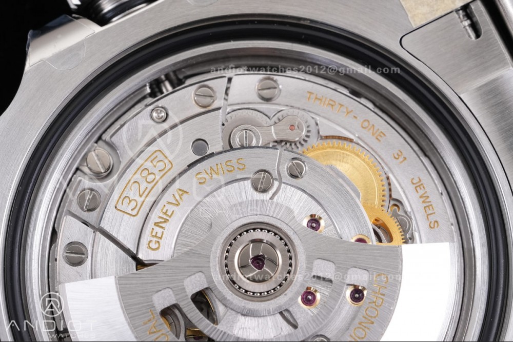 - Movement : Asian Dan Dong Super Clone 3285 Automatic GMT movement with decorated bridges & rotor with correct hand stack, 70+ hours power reserve