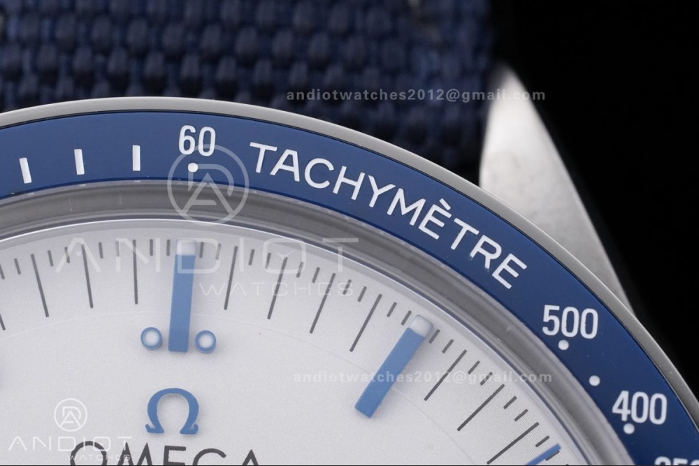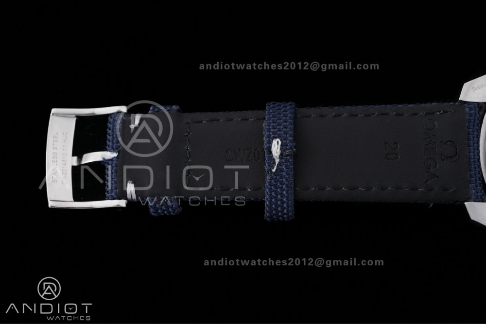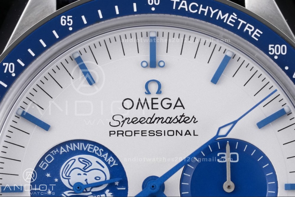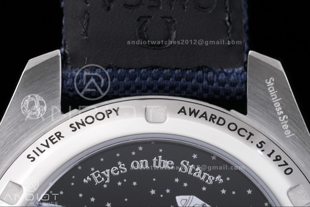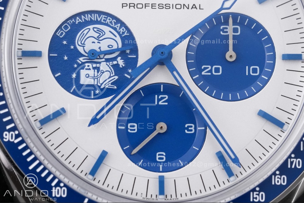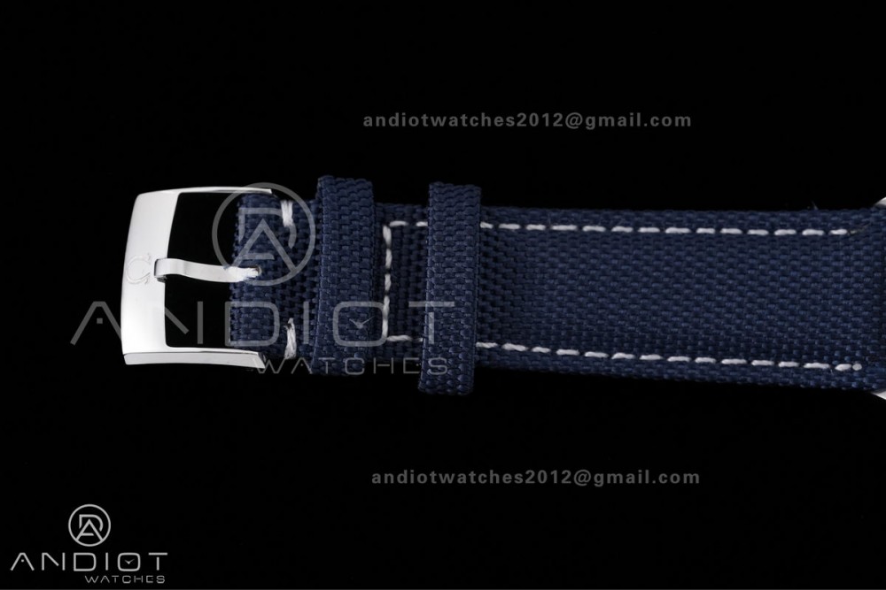 Speedmaster Professional Snoopy SS SMF 1:1 Best Edition Silver Dial Blue Marker On Blue Nylon Strap A3861(Free SS Bracelet)