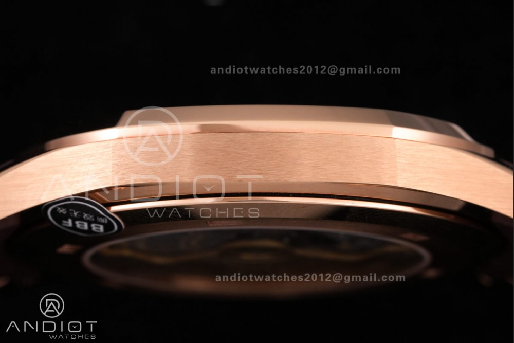 • Case : 18k rose gold plated 1:1 replicated solid stainless steel case with round polishing edges