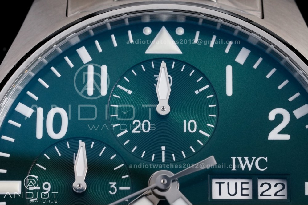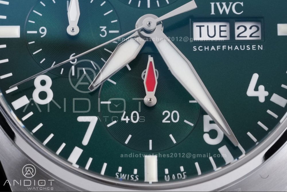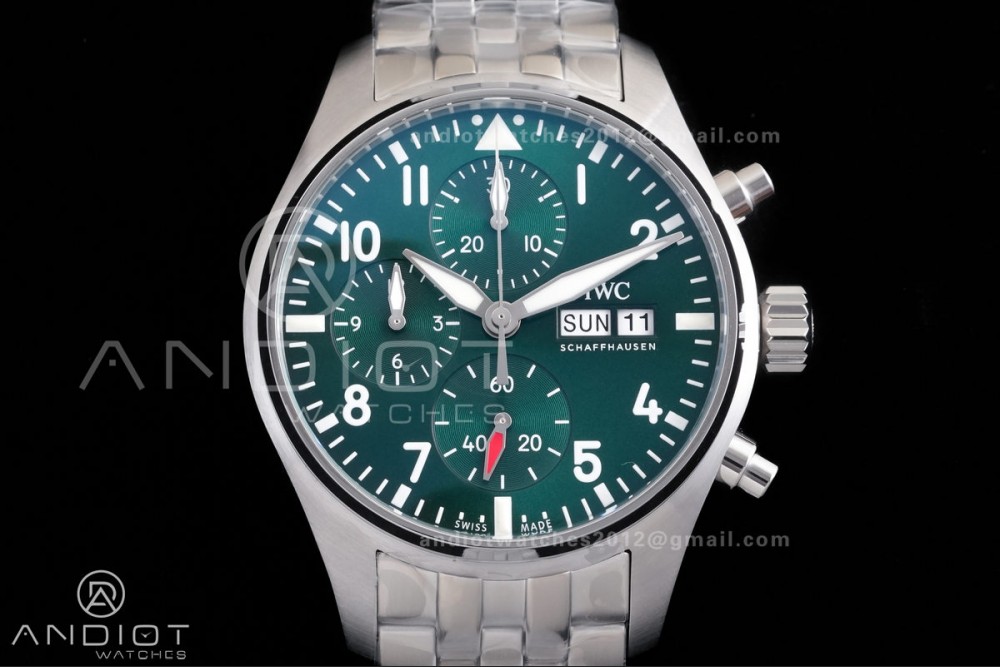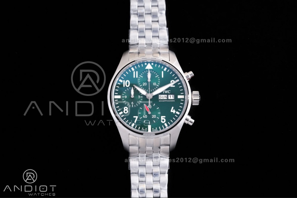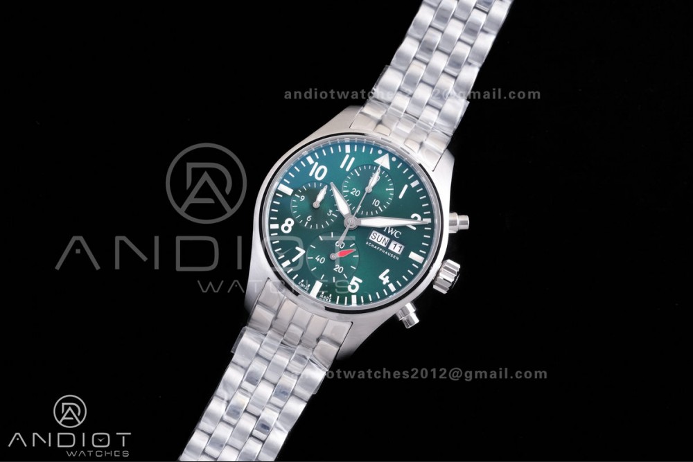 Reviews Over Pilot Chrono IW388104 APSF 1:1 Best Edition Green Dial on SS Bracelet SA69385 Super Clone