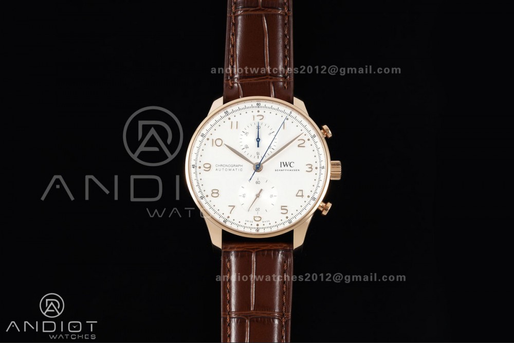 Portugieser Chrono IW371611 RG APSF 1:1 Best Edition White Dial on Brown Leather Strap DD69355 Super Clone