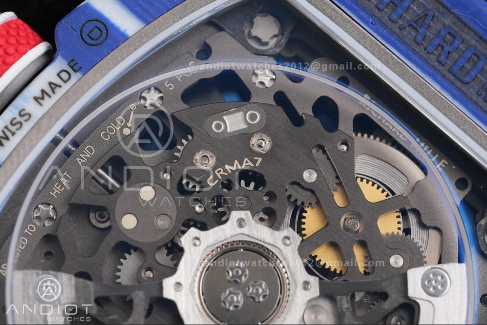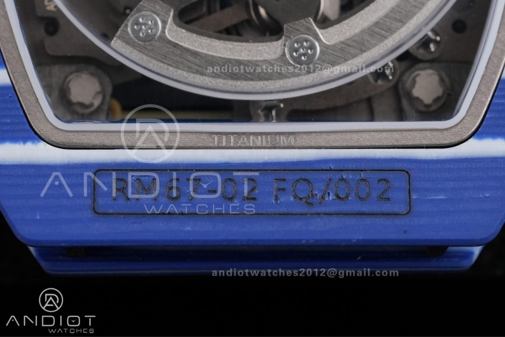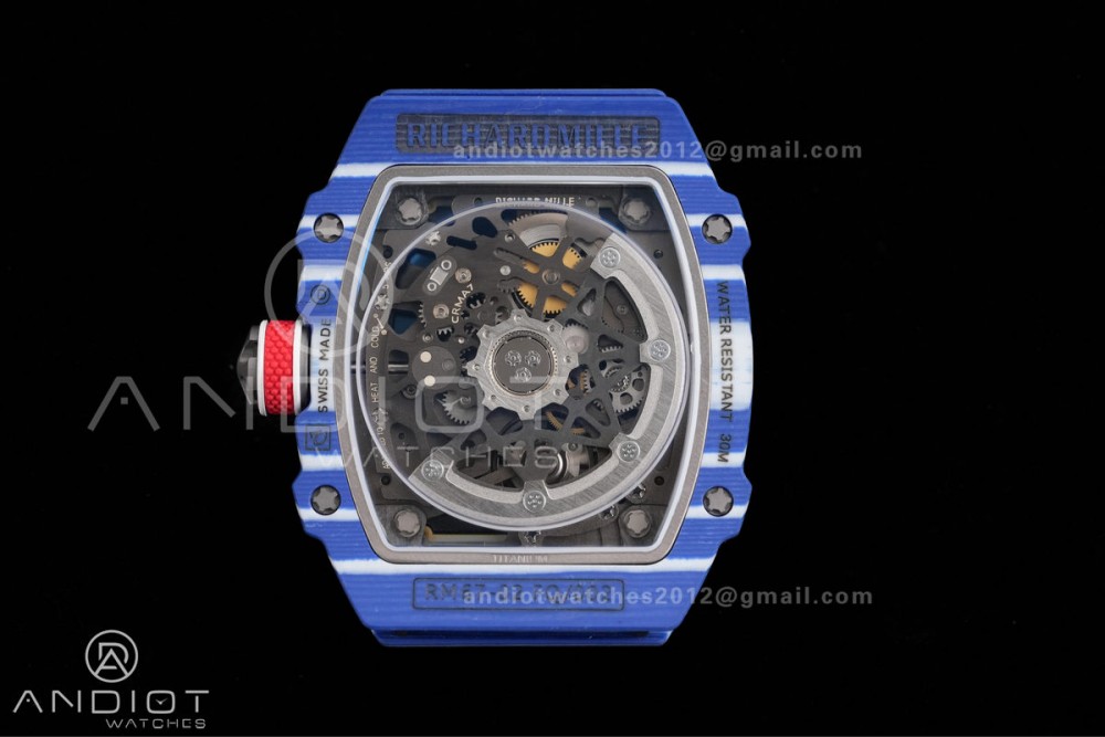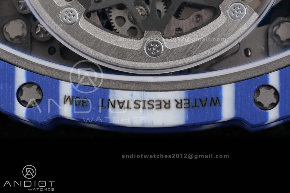 AVF RM67-02 Blue NTPT Spain Skeleton Dial on Blue Elastic strap CRMA7 Clone