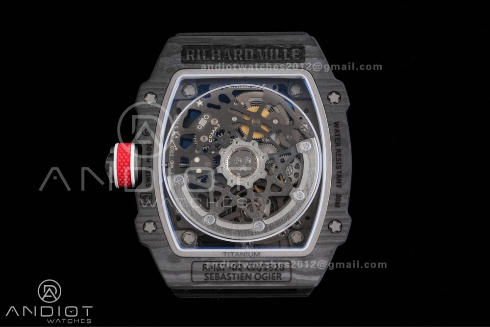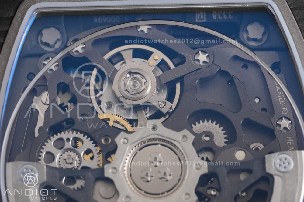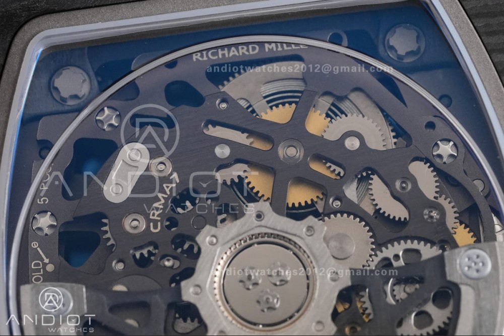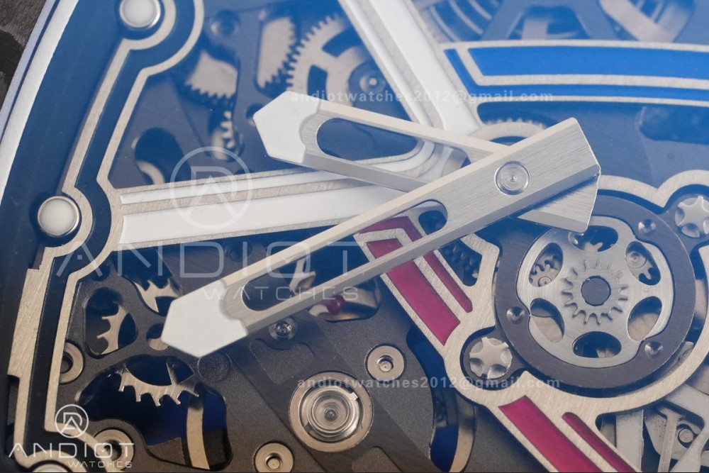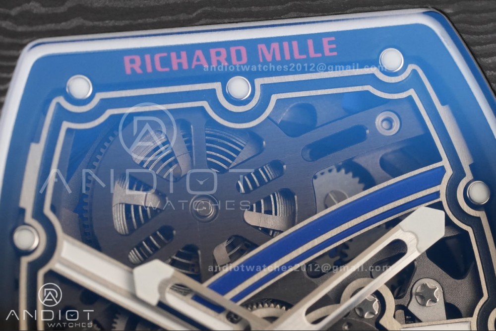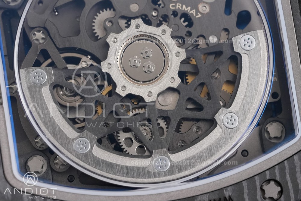 AVF RM67-02 France Black NTPT Spain Skeleton Dial on Blue Elastic strap CRMA7 Clone