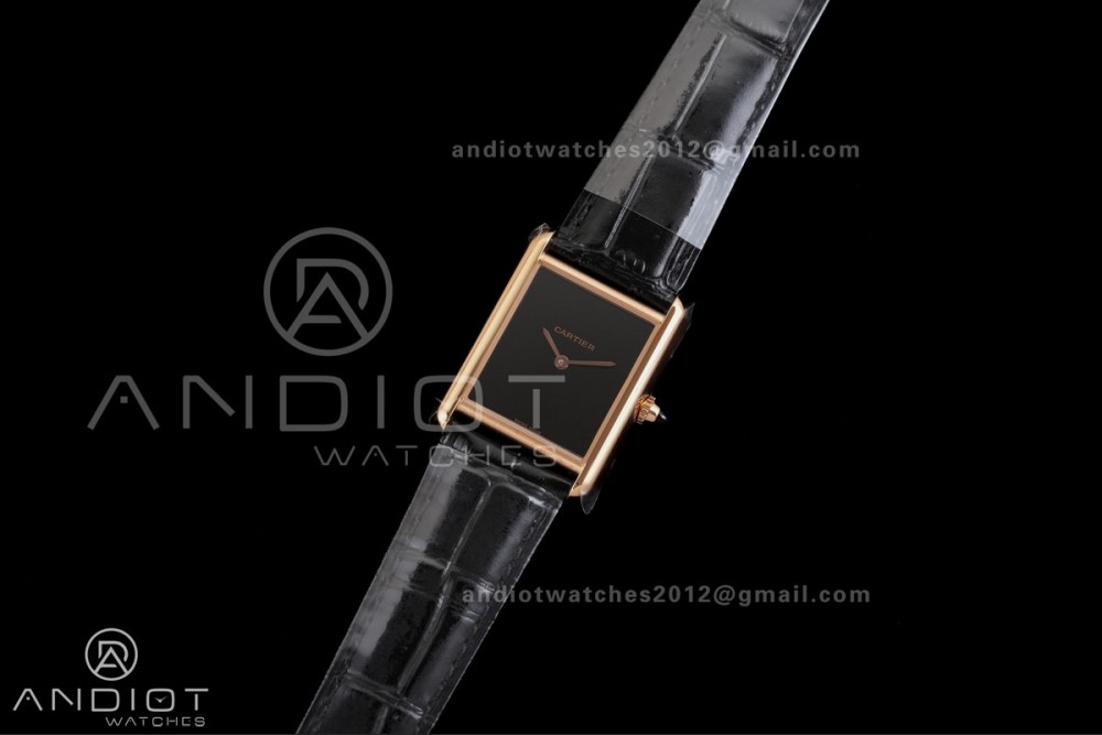 Tank Must 25.5mm RG AF 1:1 Best Edition Black Dial On Black Leather Ronda Quartz