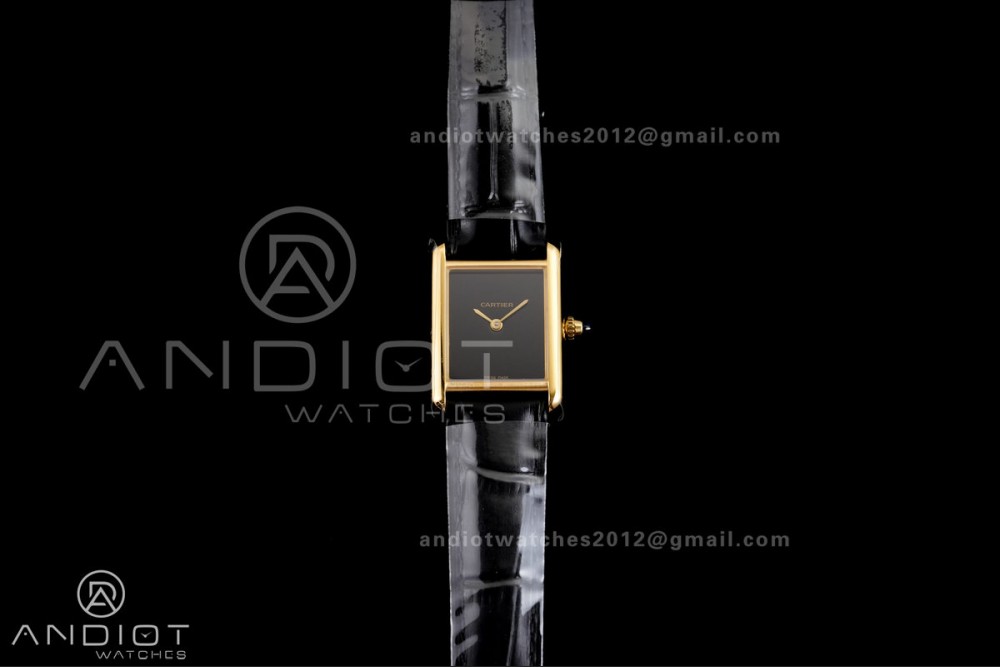 Tank Must 22mm YG AF Best Edition Black Dial On Black Leather Ronda Quartz