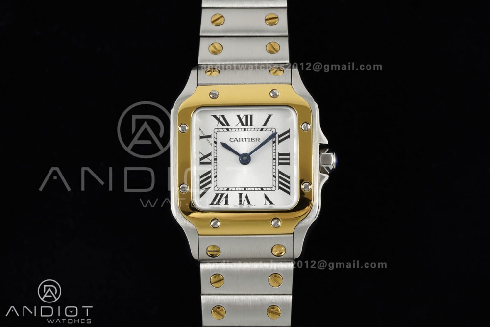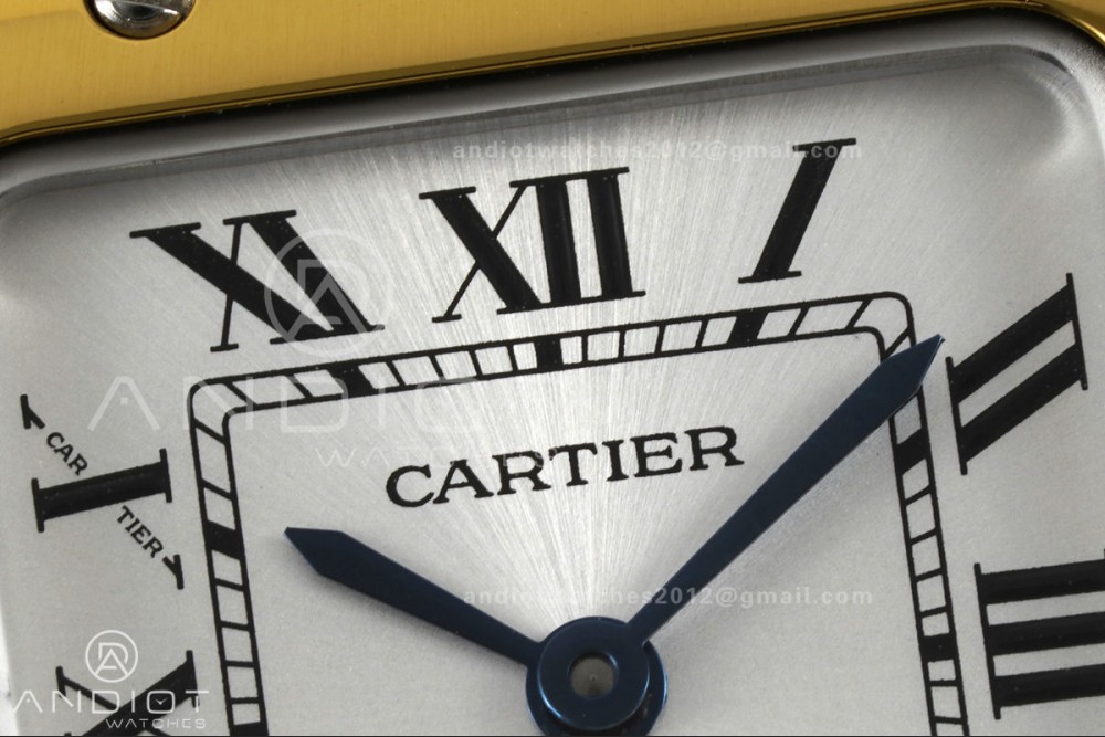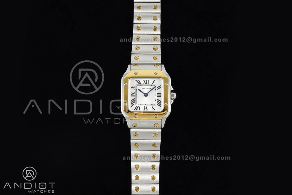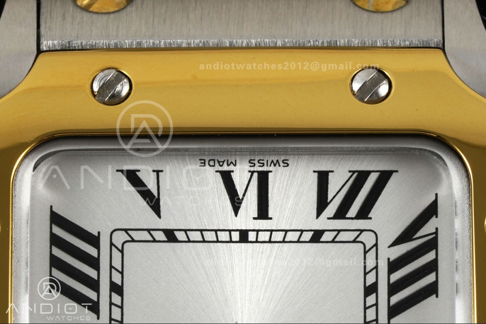 Santos W2SA0033 27x34.5mm SS/YG BLF 1:1 Best Edition Silver Dial On SS SmartLinks Bracelet Ronda Quartz