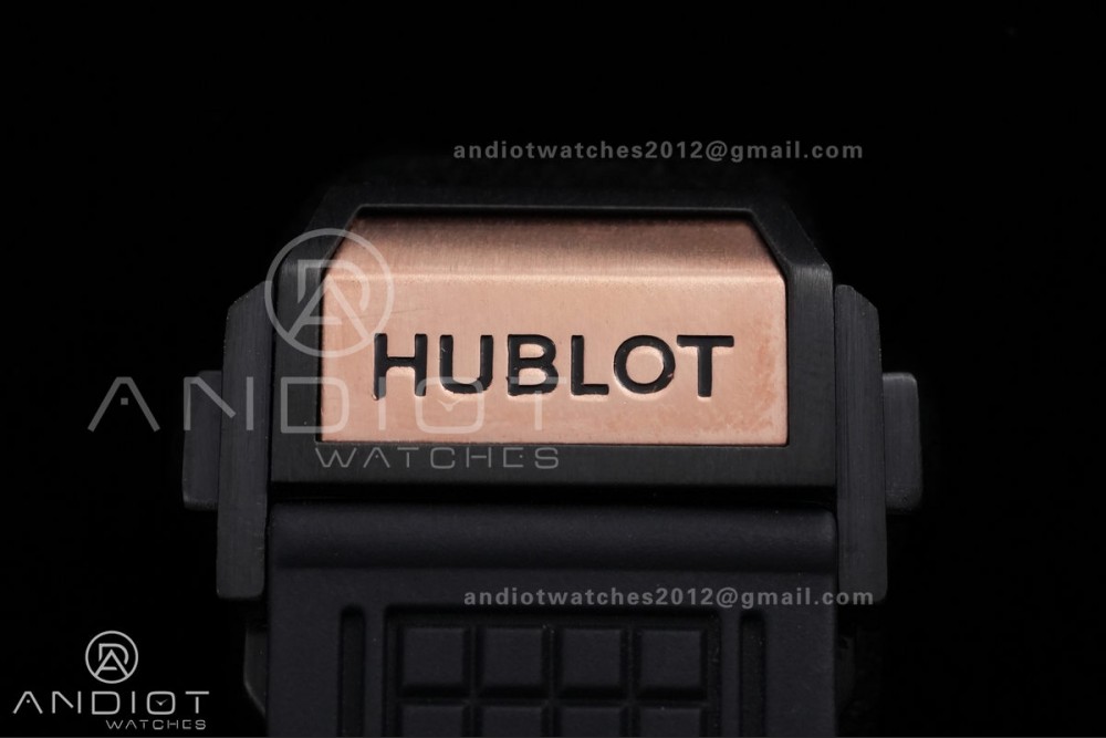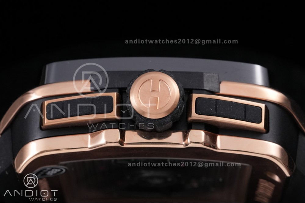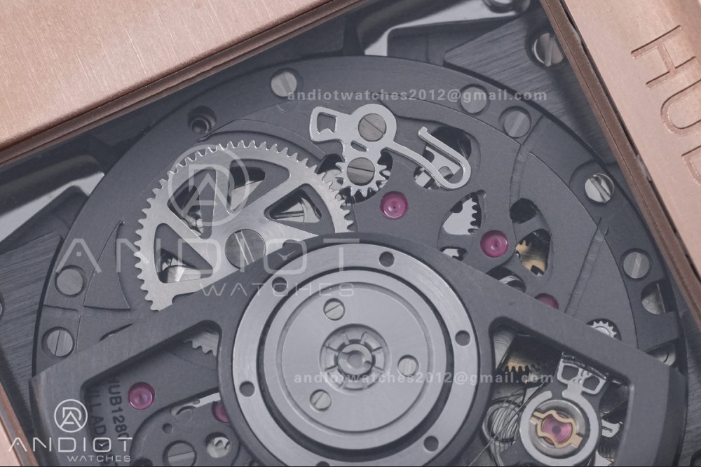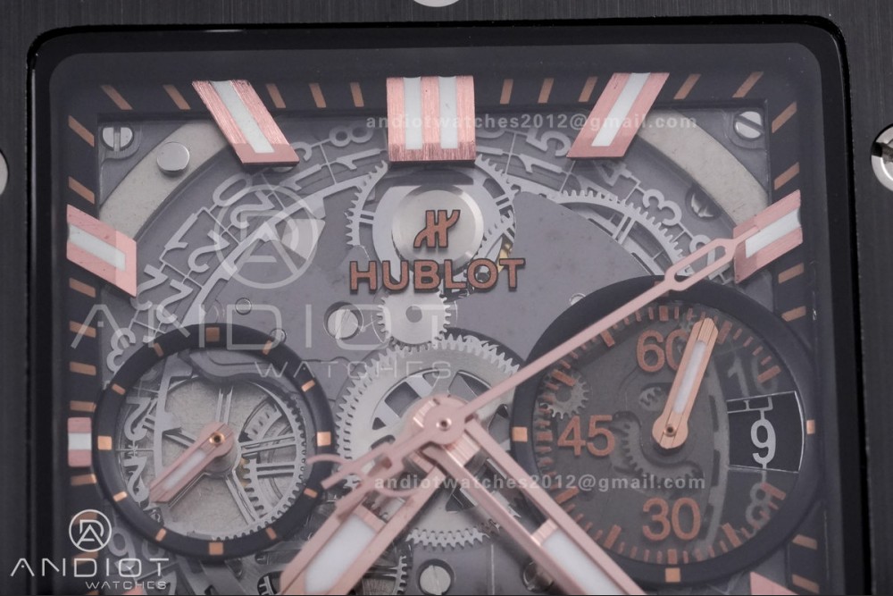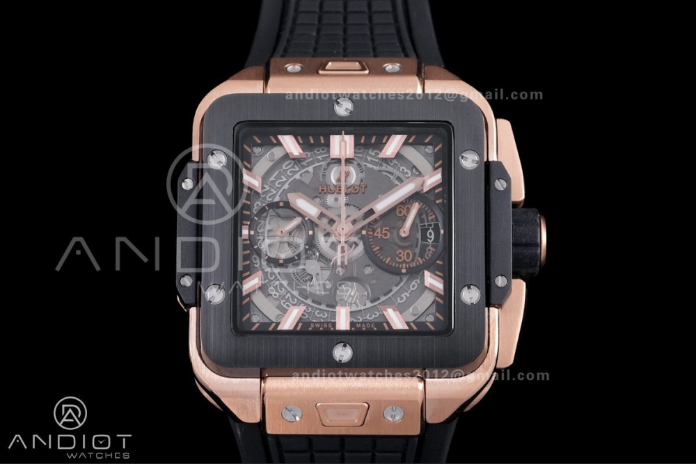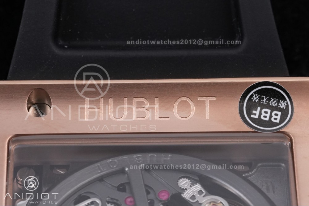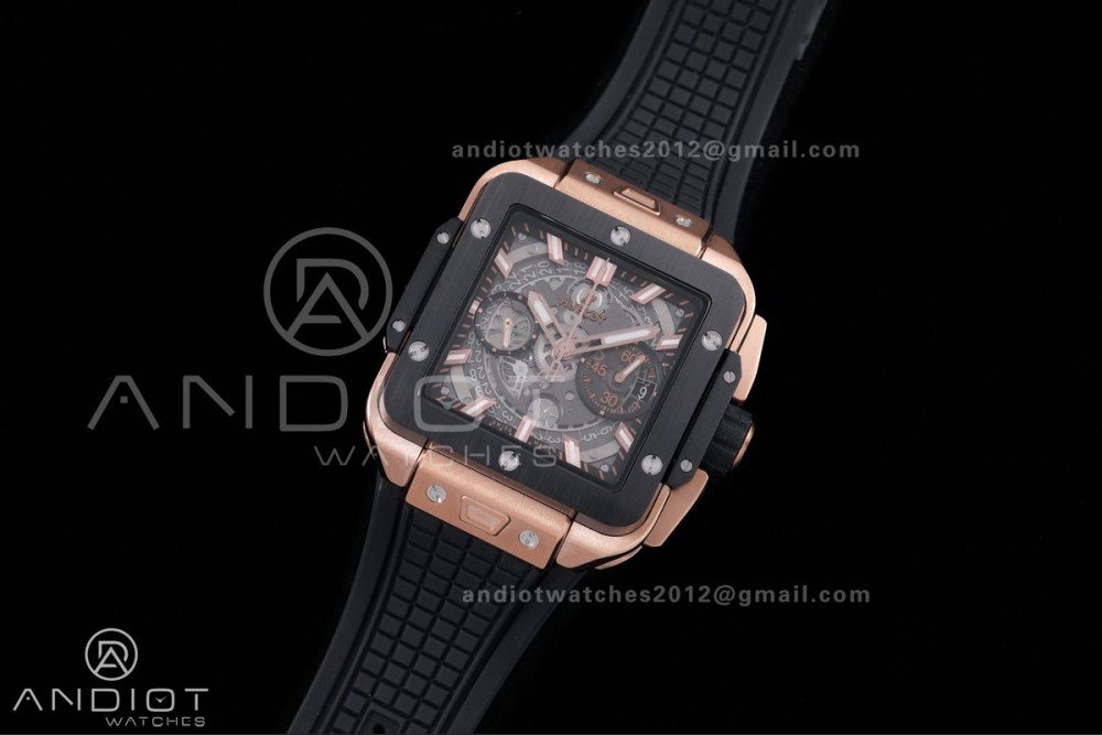 Square Bang Unico 42mm RG BBF 1:1 Best Edition Skeleton Dial Ceramic Bezel on Black Rubber Strap A1280