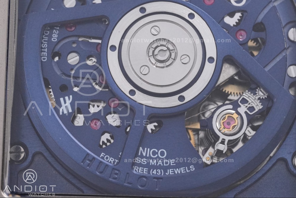 - Movement : Asian 7750 automatic chronograph movement decorated to Hublot HUB1280 movement