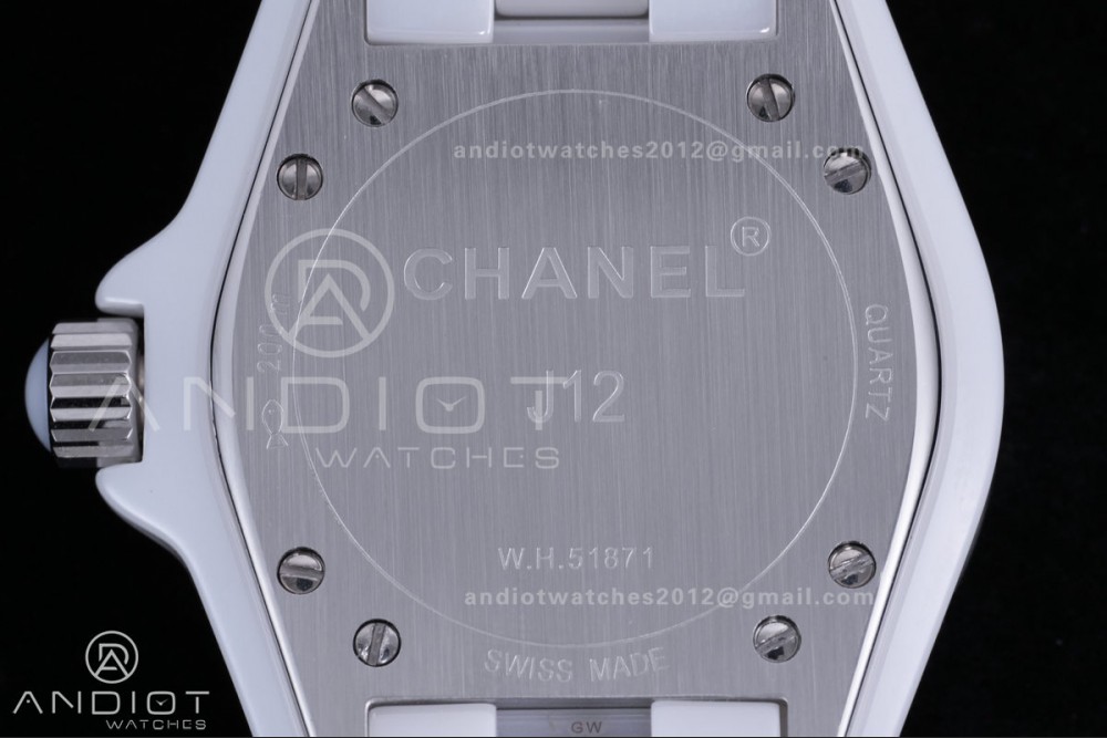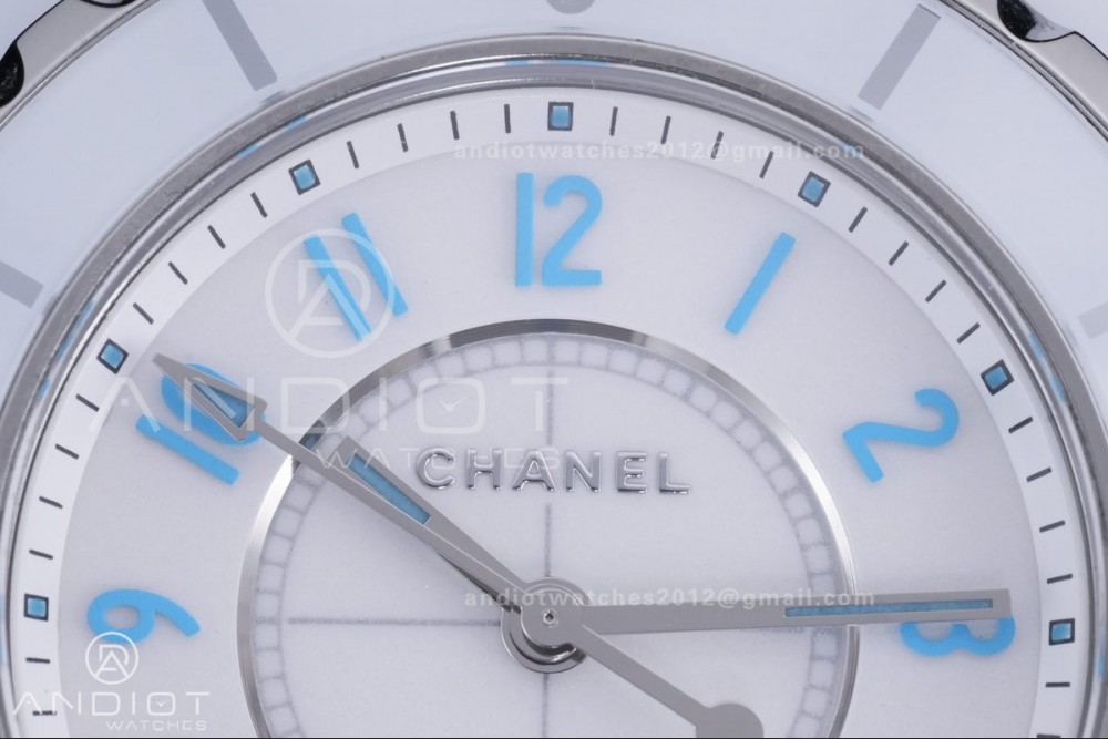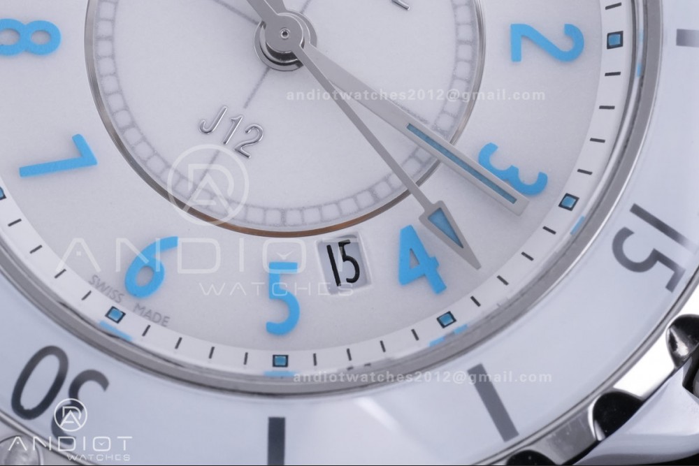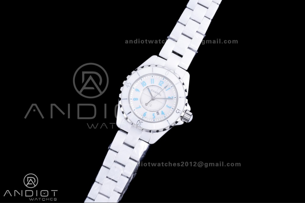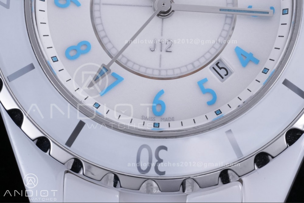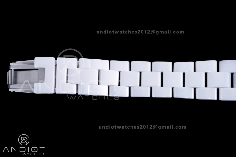 J12 33mm HTF 1:1 Best Edition White Korea Ceramic White Dial Blue Markers on Bracelet Swiss Quartz
