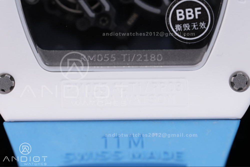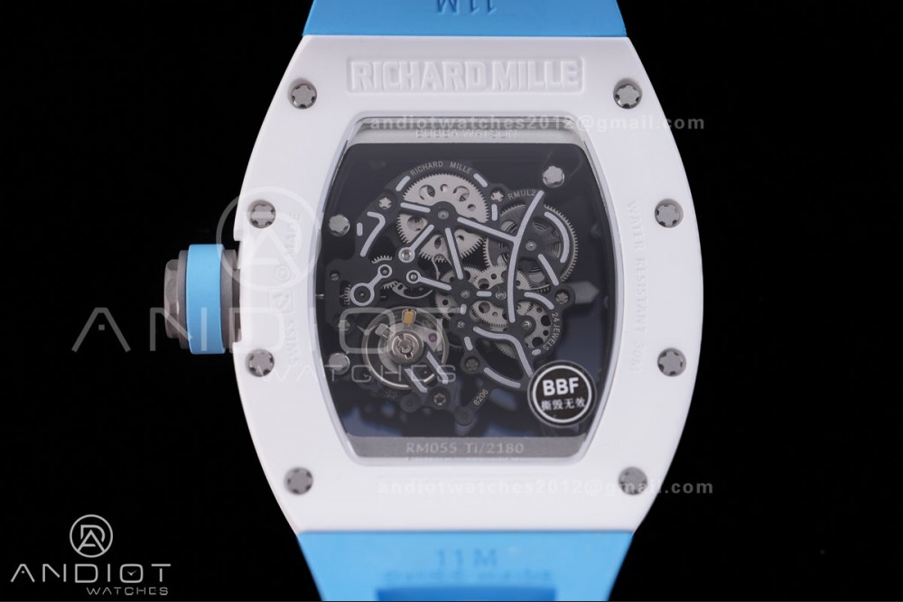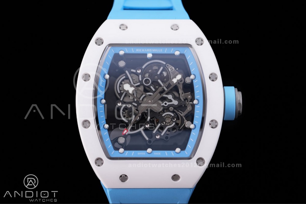 Reviews Over RM055 White Ceramic BBF 1:1 Best Edition Blue Bezel Blue Crown on Blue Rubber Strap RMUL2 Super Clone