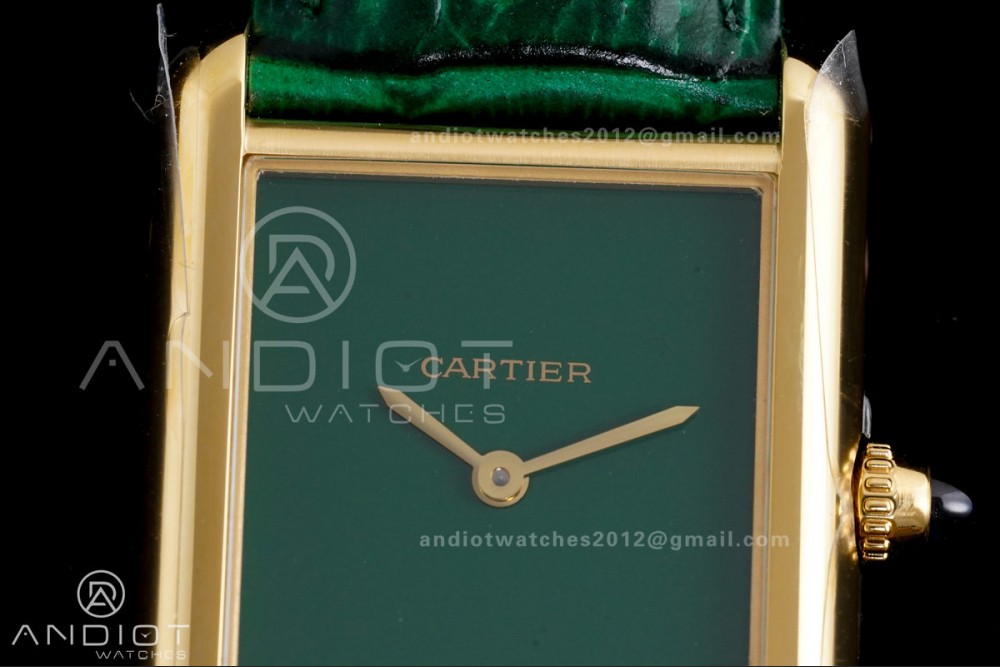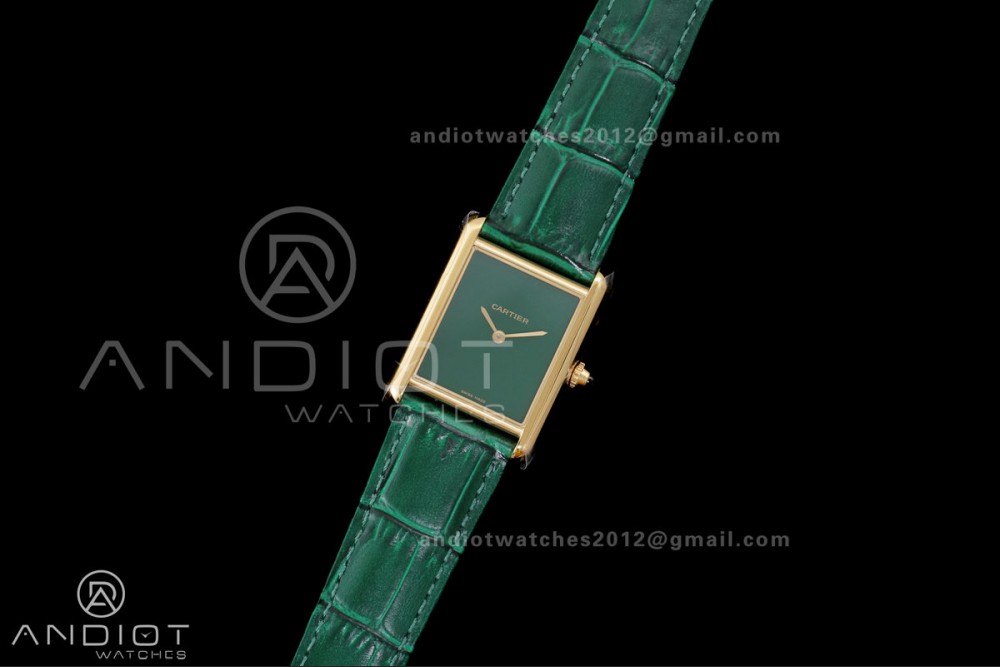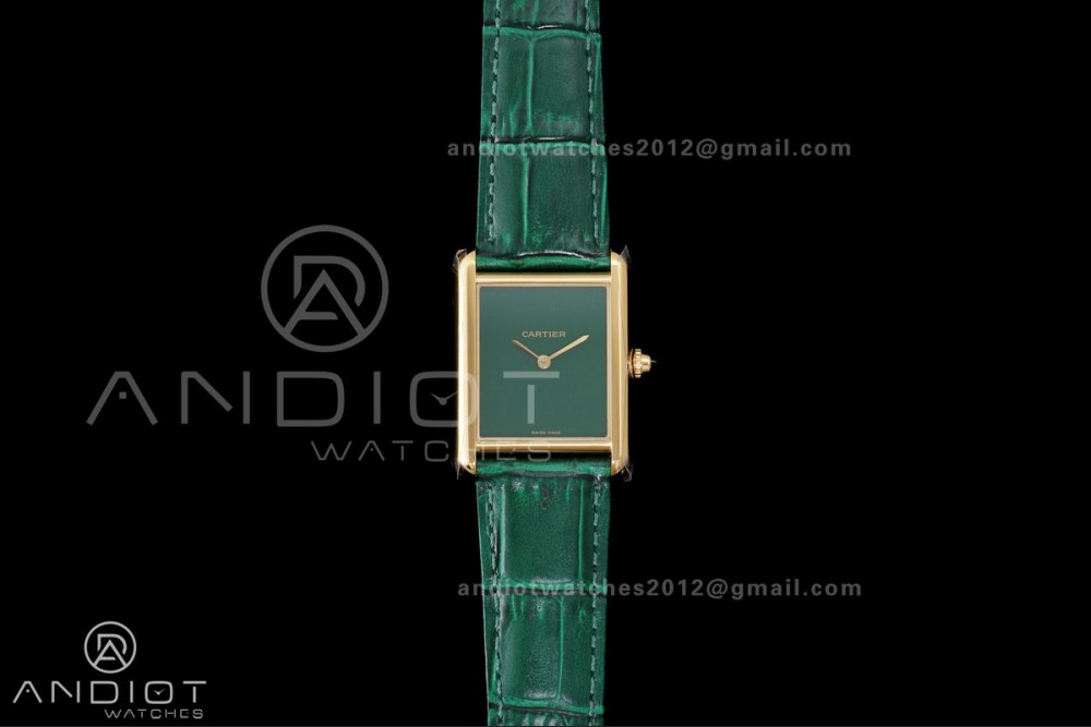 Tank Must 25.5mm YG AF 1:1 Best Edition Green Dial On Green Leather Ronda Quartz