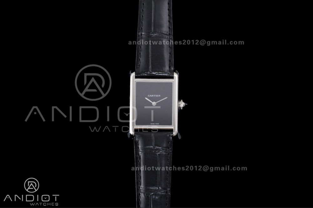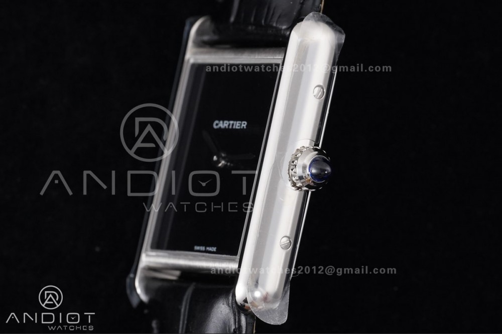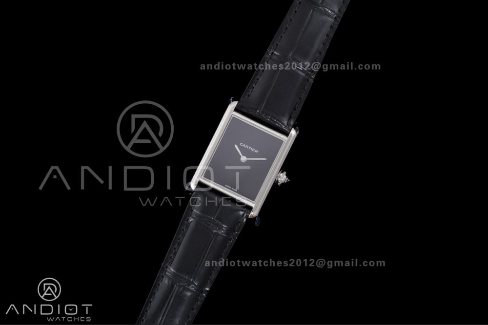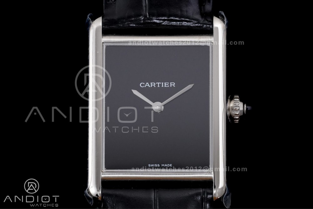 Tank Must 25.5mm SS AF Best Edition Black Dial On Black Leather Ronda Quartz