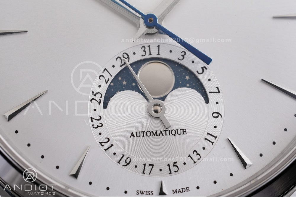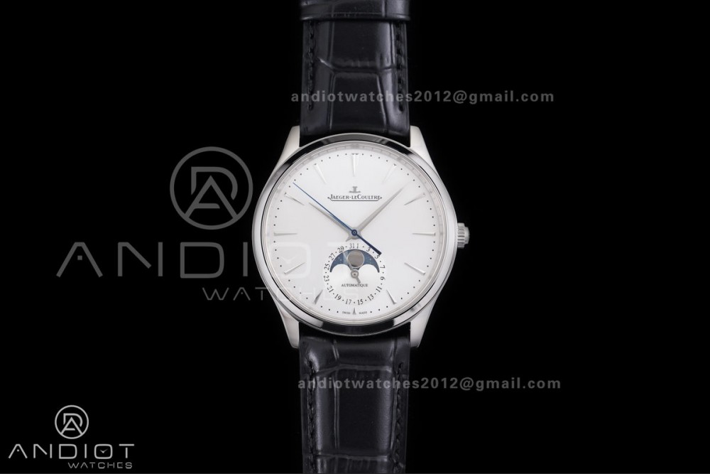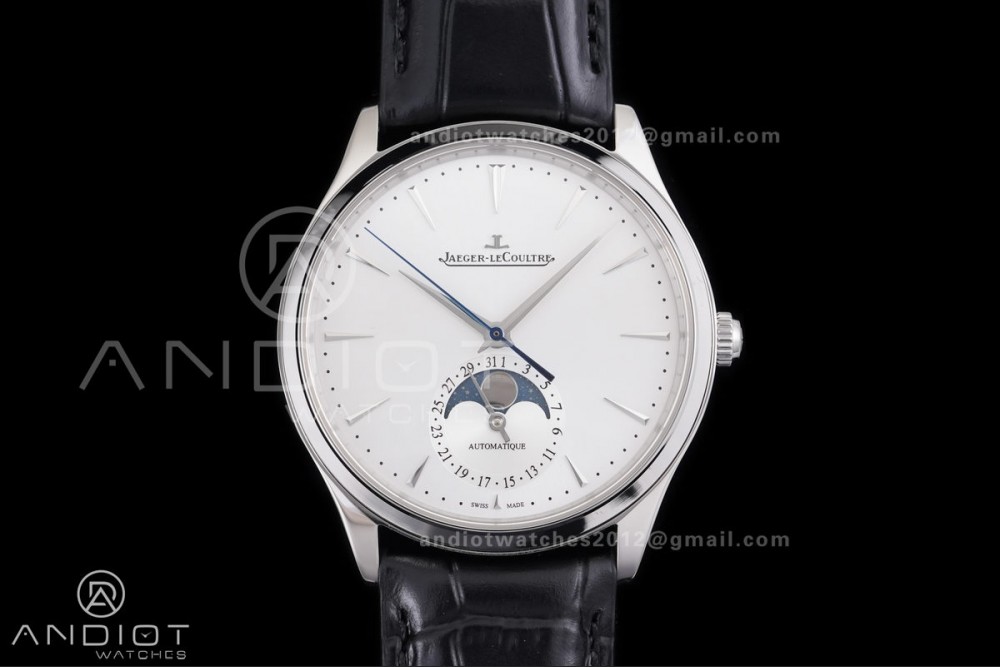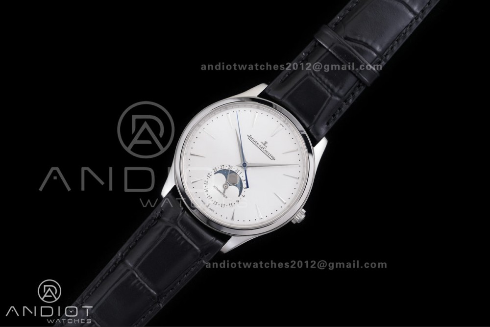 Master Ultra Thin Moon SS APSF 1:1 Best Edition Silver Dial on Black Leather Strap SA925 Super Clone