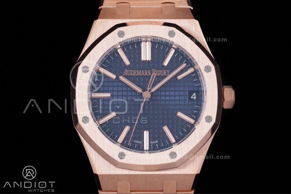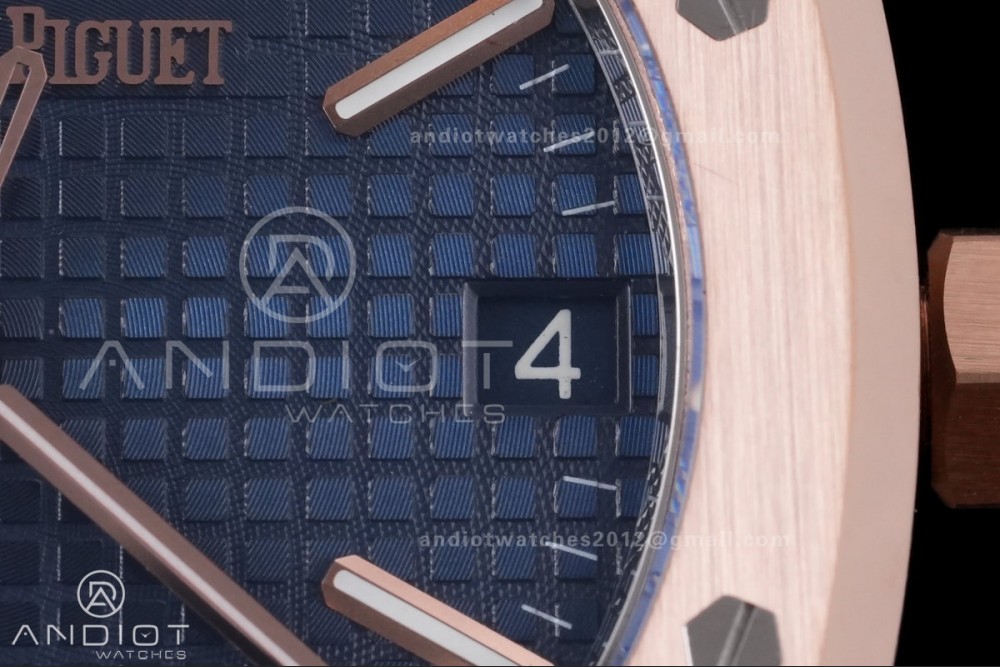 Reviews Over Royal Oak 41mm 15510 RG DDF 1:1 Best Edition Blue Dial on RG Bracelet DD4302 Super Clone (185g Weighted)