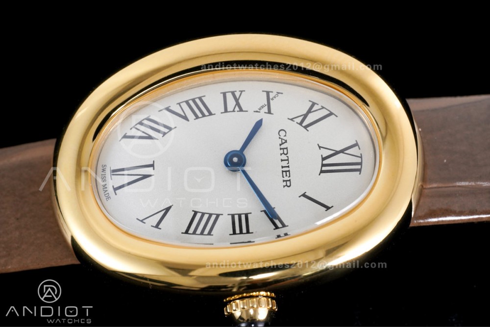 Reviews Over Baignoire Watch YG AF 1:1 Best Edition White Dial on Brown Croco RONDA Quartz
