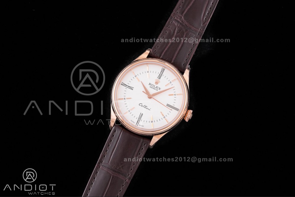 Cellini 50505 RG KZF 1:1 Best Edition White Dial Roma Markers on Brown Leather Strap SA3132