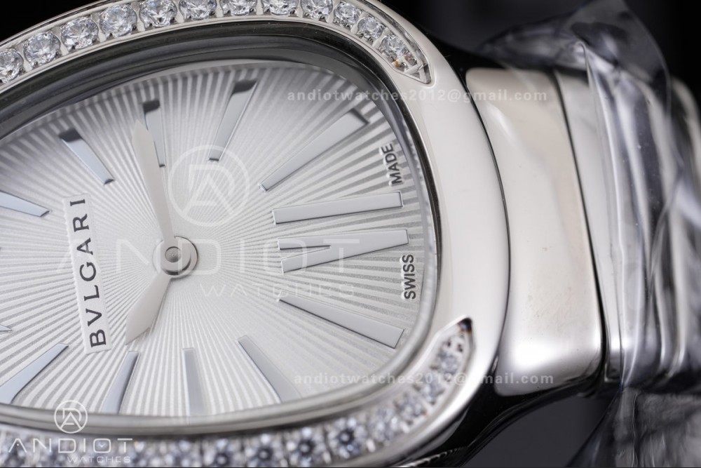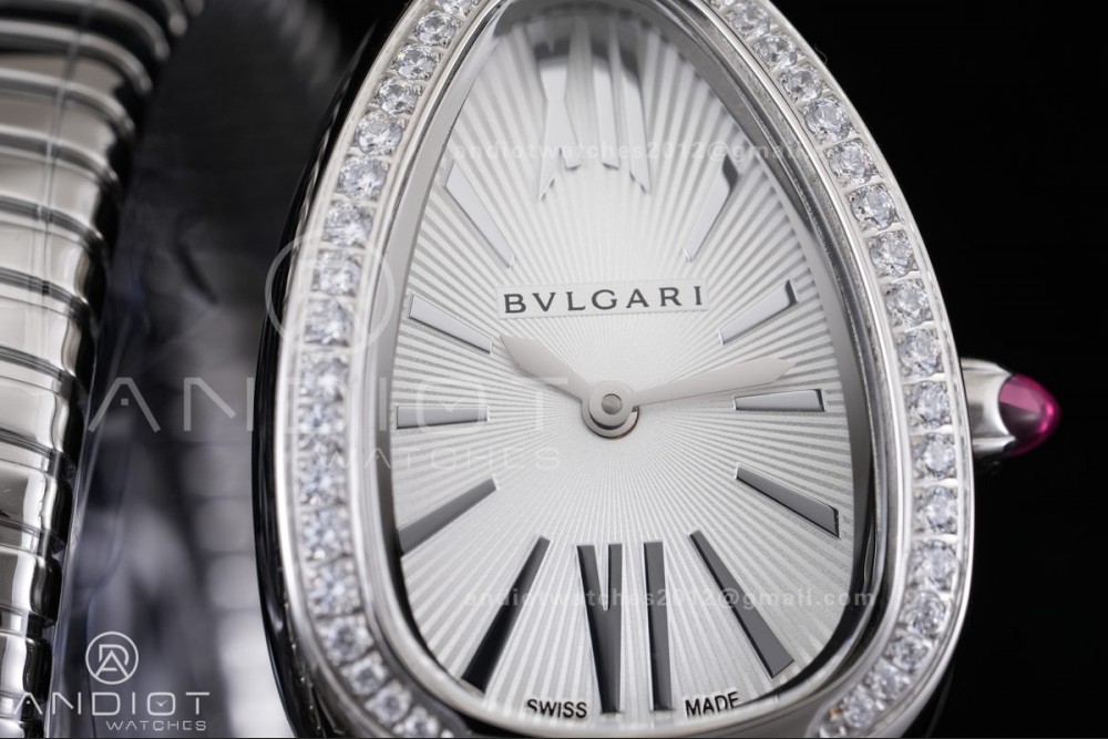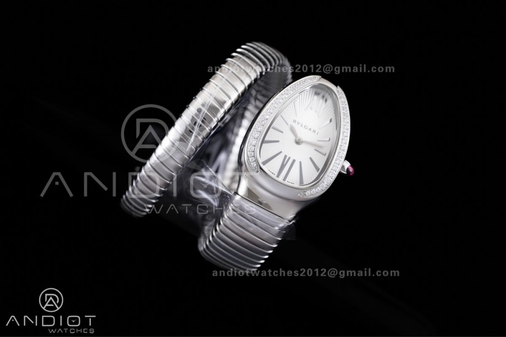 Serpenti 35mm Diamonds Bezel SS BVF 1:1 Best Edition Silver Dial on SS Bracelet Ronda Quartz