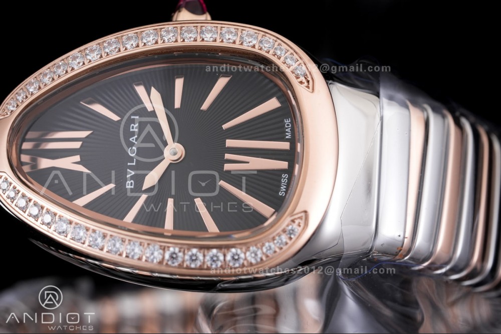Reviews Over Serpenti 35mm Diamond Bezel SS/RG BVF 1:1 Best Edition Black Dial on SS/RG Bracelet Ronda Quartz