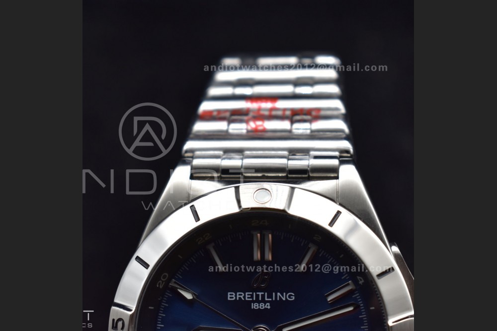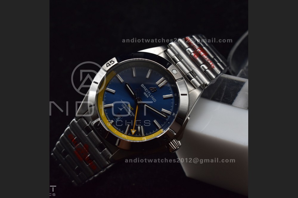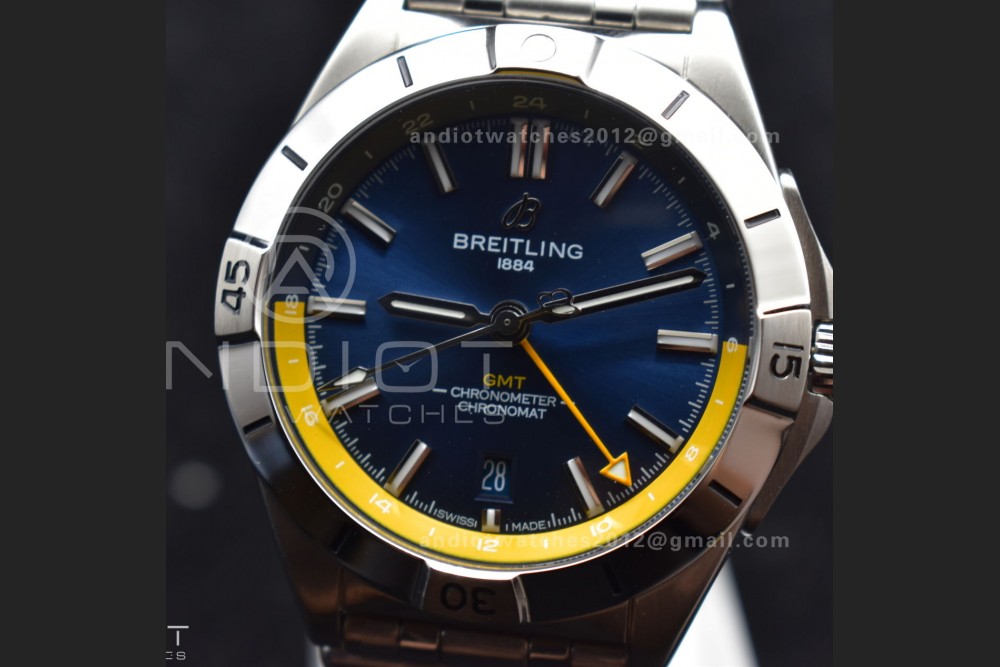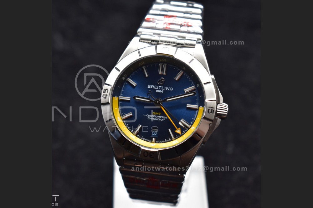 Breitling BLS Factory Chronomat Automatic 1:1 Best Edition GMT 40mm Blue Dial with Inner Yellow Rim On SS Bracelet A2836