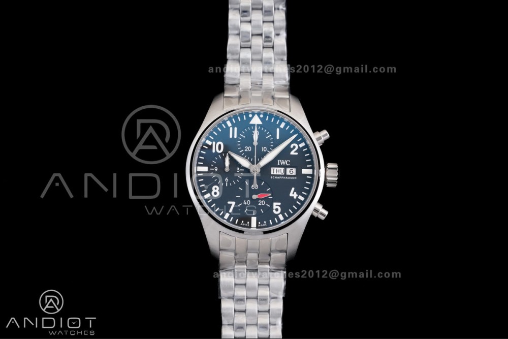 Pilot Chrono IW388113 APSF 1:1 Best Edition Black Dial on SS Bracelet SA69385 Super Clone