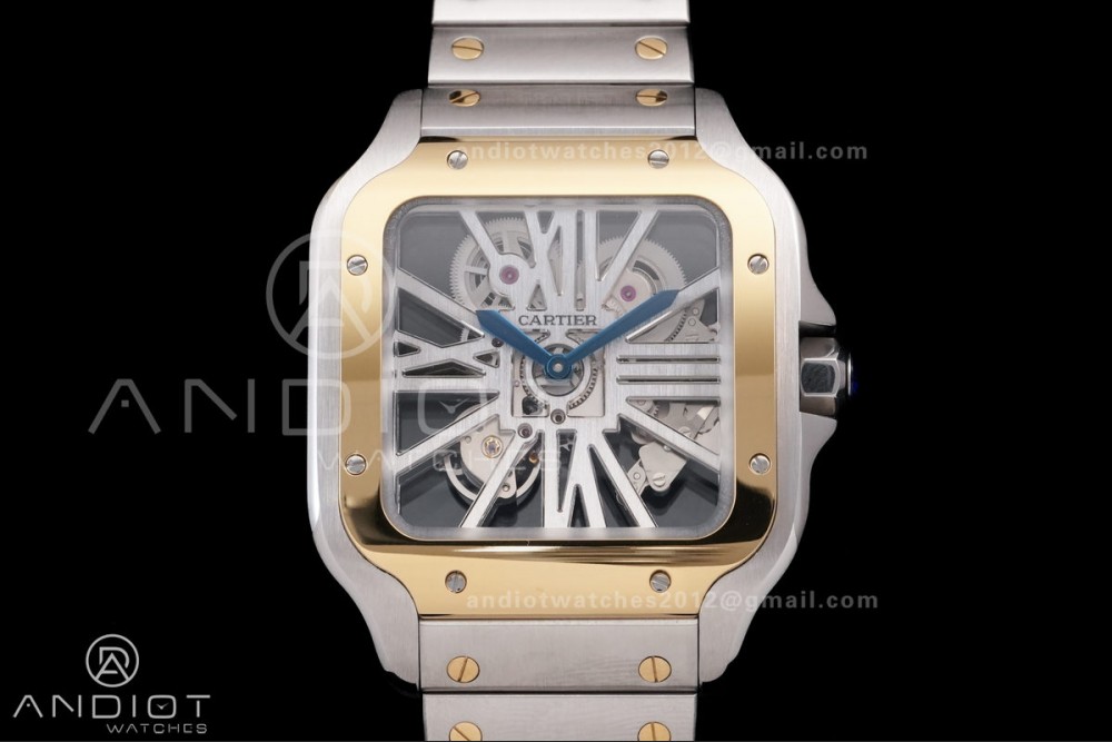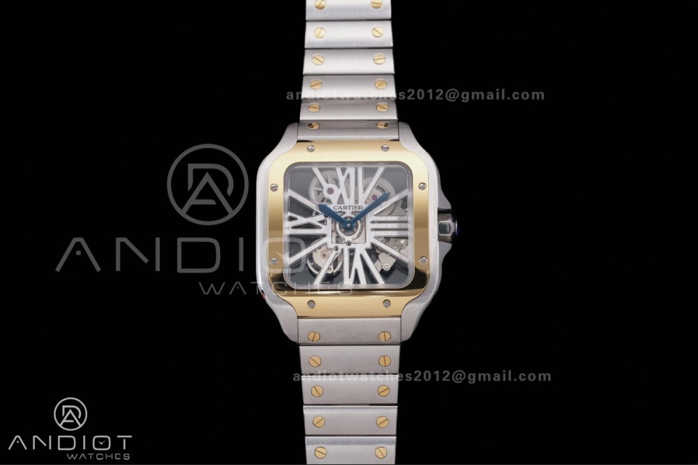 Santos de Cartier Skeleton SS/YG MLF Skeleton Dial on SS/YG SmartLink Bracelet 9611MC Super Clone