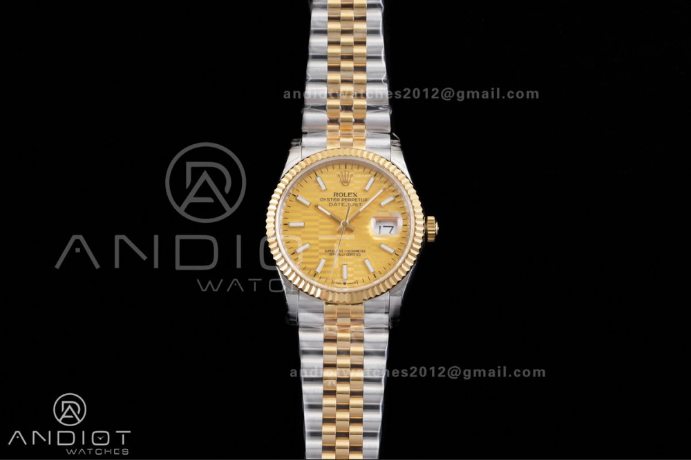 DateJust 36 SS/YG 126233 GSF 1:1 Best Edition YG Textured Stick Dial on Jubilee Bracelet A3235